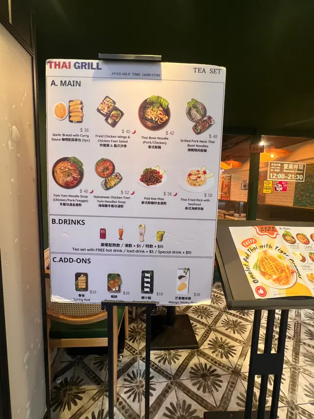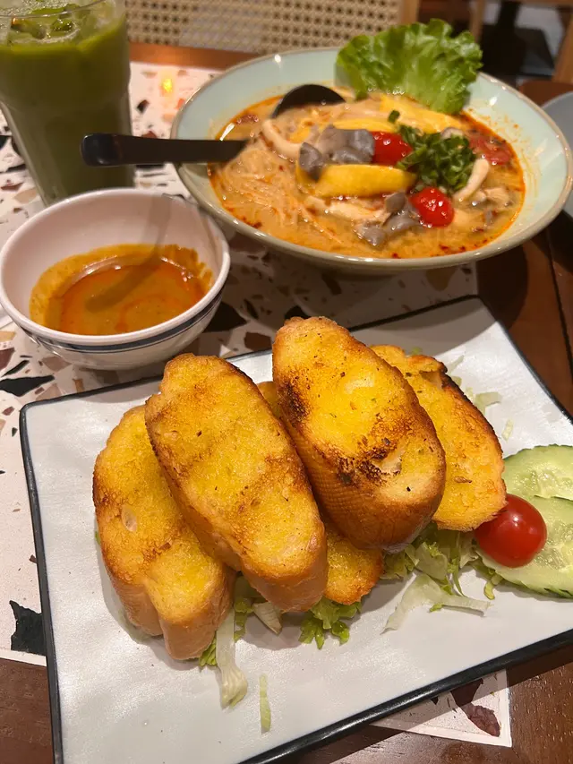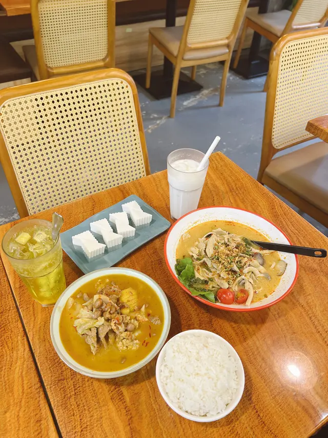 同幾個朋友行完山係筲箕灣落車,著名東大街搵食,路過一間幾chill 泰國餐廳,門面裝修簡潔,帶出泰國風味,係外面望落寛落,毫不猶豫就選擇呢間餐廳。正值下午茶時段,有下午茶套餐:咖哩配蒜蓉包下午茶餐搽滿蒜蓉又脆口多士,點滿咖哩汁,令我最驚喜係咖哩汁唔辣,有椰奶香味,好特別,食起上來咸味適中。海南雞冬蔭功湯金邊粉下午茶餐冬蔭功湯底可以簡辣度,而我就簡左少辣,酸甜辣度豐富,海南雞份量正常。泰式醉貓炒金邊粉下午茶餐餐牌有一辣椒🌶️仔,的確對於食唔到辣既人就唔好簡,有好多濕辣椒仔同乾辣椒仔一齊炒,所以都辣。材料有碎肉,碎豆,香草。另外單叫左碟泰式生蝦刺生我覺得食親泰國餐廳一定要食泰式生蝦刺生蝦,一碟有8件,肉厚,彈牙,唔錯。每樣下午茶套餐加18-38蚊有款小食我地3個人就叫左春卷,芒果糯米飯,椰汁糕。芒果糯米飯以心形形狀上碟,一半是紫米,一半是普通糯米,椰奶另外自己點,暖暖地幾好食。…查看更多