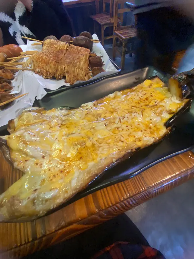 之前叫過依間店既串燒外賣,覺得好好食,而且價錢唔算貴,所以今次特登來堂食。依度既串燒好好食,即叫即燒,但如果早去既話,員工只有一個,雖然堂食既人只有一兩枱,然而依間野接得比較多外賣訂單,所以都要等啲時間。串燒當然可以選擇辣度,串燒上會灑上辣椒粉同燒烤粉,味道不錯,風味十足!我哋叫咗咁多野,而我哋覺得最最好食既係依個芝士茄子!芝士超級多,目測用咗至少兩種芝士。茄子熱辣辣,而且芝士仲會拉絲~非常之有驚喜!…查看更多
