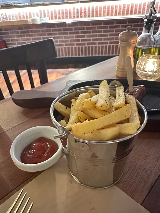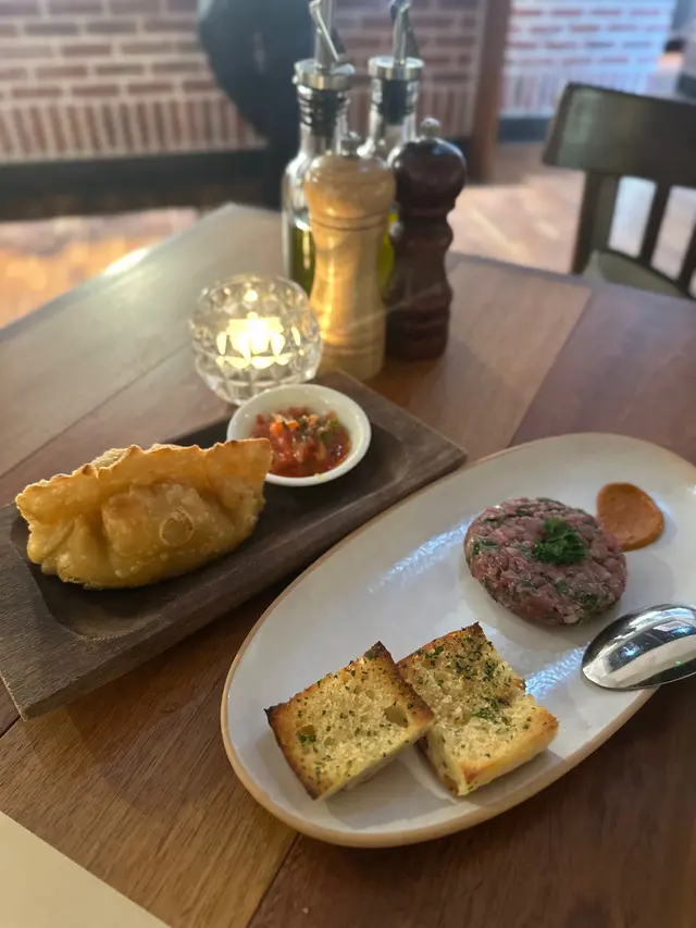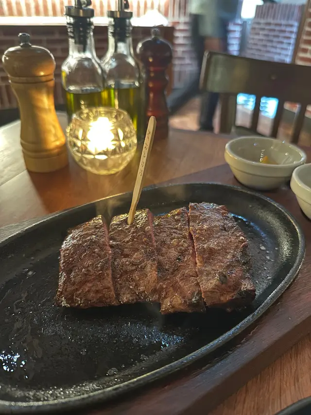 今次和朋友來到這間超人氣的扒房試試他們的Dinner Set (價錢$398),食物美味而服務也相當到位,整體感覺頗為不錯!首先,餐湯是蕃茄湯,味道偏濃郁,與麵包搭配讓人一口接一口。前菜方面,我們點了阿根廷自家制餡餃,這款餃子有雞肉和牛肉兩種選擇,外酥內嫩,每一口都能感受到豐富的肉香。另外,我們還嘗試了生牛肉他他,鮮嫩的口感令人驚喜!主菜方面,我選擇了香煎比目魚,肉質結實而魚皮烤得相當脆口,口感上很不錯。朋友則點了平鐵牛排,三成熟的掌握得恰到好處,肉質鮮嫩,超級惹味!配菜是即炸金黃的脆口薯條,搭配香蒜,簡單卻讓人滿足。最後,甜品部分不得不提的就是焦糖布丁,口感滑順,甜而不膩,絕對是整餐的亮點!餐廳見我們慶祝特別節日,還額外送了Fruit Juice with Mint,超級清新,讓整個用餐體驗更添驚喜。…查看更多