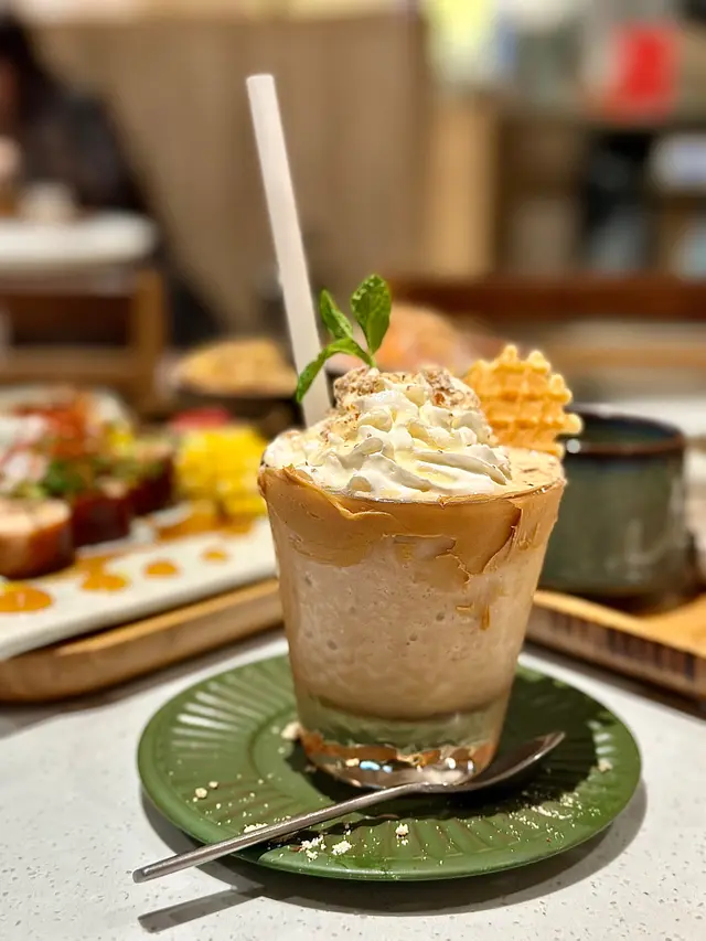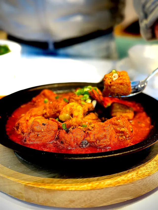 金磚蒜蓉包 ($68/4件)一上枱就知冇伏!麵包烘到金黃脆口,一定要叫埋咖哩大頭蝦點咖哩!一定要趁熱食超好食 生蝦刺身 ($168/8隻)蝦肉用冰碗鎮住上枱❄️,夠晒儀式感!每隻都爽脆彈牙,蘸埋自家製泰式辣汁(勁多蒜粒+青檸汁),酸辣度直衝天靈蓋🌶️黑胡椒粉絲大蝦煲 ($268)全晚MVP! 原隻開邊大蝦好大隻,蝦膏多到核爆💥 粉絲索盡黑椒汁+蝦油精華,仲有啖啖洋蔥絲增加口感,鹹香惹味到想舔煲!建議3-4人分享,否則飽到上心口泰式咖哩大頭蝦 ($198/隻)咖喱汁係靈魂‼️ 椰香濃郁帶微甜,溝埋蝦膏變橙紅色,**秘技:拎蒜蓉包狂蘸汁食**,罪惡感爆錶但停唔到口~蝦肉厚實新鮮肉碎生菜包 ($88)肉碎炒得乾身唔油膩,加入薄荷葉同青檸汁好清新🌿!生菜新鮮脆口,自己包住食過癮又解膩椰汁雞湯 ($88)酸辣平衡得剛好,椰奶香滑唔「削」喉,雞肉嫩滑唔鞋口,熱辣辣飲超暖胃! 芒果黑糯米飯顛覆傳統嘅神作!芒果🥭甜到漏蜜💛 糯米吸滿椰香煙韌軟糯... 食完想encore! 泰式椰汁千層糕煙韌控必點!層次分明咬落QQ的,椰香天然唔假甜,當飯後小甜點啱啱好~ 🥤 飲品抵飲之選凍泰式綠奶茶 ($36)茶底甘香唔澀,甜度適中,飲完成個泰國返咗嚟~ 椰汁椰果冰 ($32)椰果多到差啲瀉!椰奶味濃,解辣一流✅ 大份夾抵食!4-6人聚餐最划算,海鮮+小炒+甜品全制霸~ 排隊提示週末晚市6點後必排隊!建議5:45前到,等第一輪入座快靚正~ …查看更多