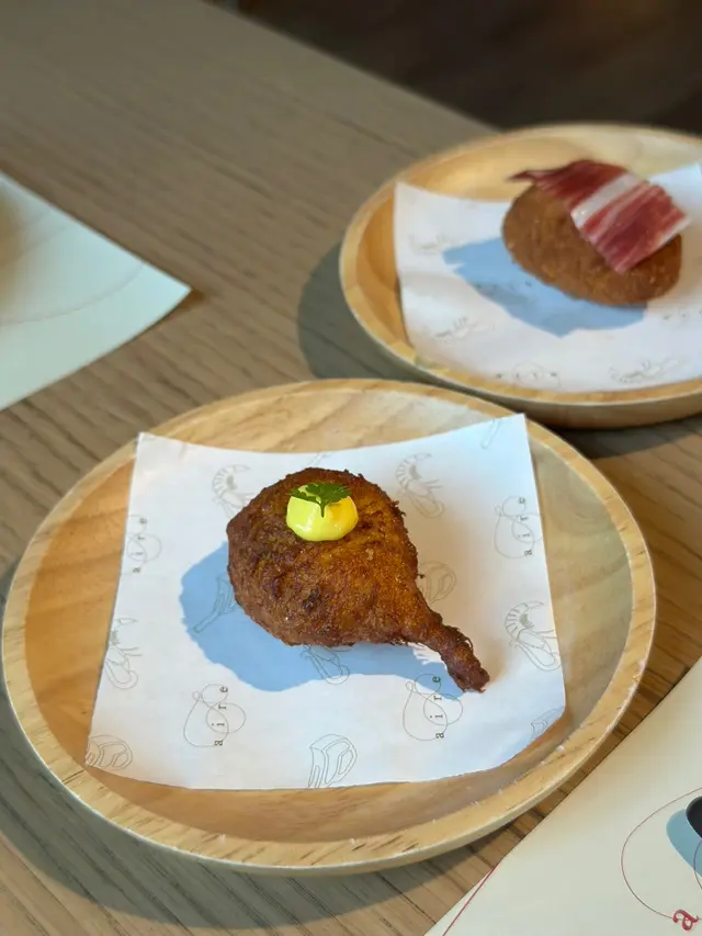 嚟到利苑新開嘅西班牙菜餐廳 喺我至愛西班牙菜pica pica姊妹店 所以未食已經對佢好有信心🤣 比起Pica pica嘅熱鬧餐廳環境 呢度係行高檔餐廳嘅感覺無論食邊間西班牙餐廳 我既前菜都係必叫番茄麵包同croquette🤣Croquette金黃酥脆的外殼一咬就碎 有鮮蝦既海鮮,鮮味同伊比利亞火腿嘅鹹香 兩款都十分推介🥰🐟Mediterranean bluefin tuna loin slightly seared, tomato marmalade, spring onion表面快速炙燒鎖住鮪魚的寶石紅肉質 酸甜的番茄果醬同清爽春蔥,完美平衡魚脂的豐腴!平時好少食!🦑 Seafood black rice with baby squid, ink & all-i-oli用墨魚汁染黑既米飯燉煮到粒粒分明 吸飽了幼魷魚的鮮甜 每一勺都好有海洋鮮味!又一間西班牙餐廳可以揀 餐廳環境高檔 但係價錢都合理 而家呢個天氣仲可以坐outdoor 夠哂嘆😋Aire (銅鑼灣)銅鑼灣希慎道33號利園一期3樓301B-302號舖…查看更多