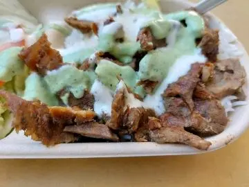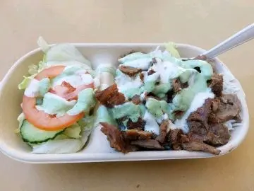 考試翻學經過泳池邊,諗起好耐冇食過kabab,諗起佢啲烤肉嘅飯幾好食,所以就果斷入去買先。叫咗個烤牛肉飯,飯除咗有好多好多嘅烤牛肉之外,仲有一堆沙律。沙律都係不外乎青瓜生菜同蕃茄,不過都幾新鮮!👍👍👍👍👍牛肉嘅份量都好多,鋪滿咗成個飯,牛肉上面仲有啲汁。牛肉唔會好乾好柴,同埋牛肉味嘅肉味都好濃,配埋上面啲酸酸地嘅汁,都係非常之夾。同下面啲飯一齊食,都好食。其實好鍾意食呢一種,清真食品比較長嘅白飯。…查看更多