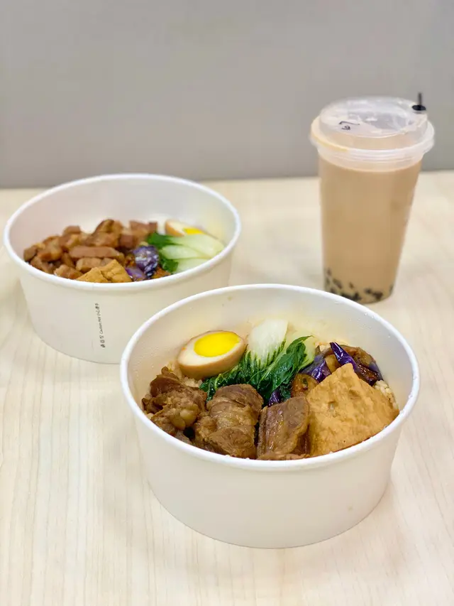 行過見到呢間台式外賣店,見到餐牌又唔貴wor就試下啦!餐廳主要係做外賣便當,一到中午12點就好多學生同附近打工仔幫襯!雖然好忙,但店員態度都好好,值得一讚!呢次叫左招牌滷肉飯便當($56 )同紅燒牛肉便當($62)兩個份量都超多,同埋真係好好味。我係食滷肉飯,肥瘦岩岩好,而且個滷肉汁夠多,餸飯一流!個便當仲有豆腐、茄子、白菜同蛋🍆🥚🥬,真係好夠份量🙈,仲有跟餐會有紙包飲品,加錢可以轉珍珠奶茶同其他特飲🥤。本來對珍珠奶茶無咩期望,但飲落又幾香滑,珍珠夠腍,因為我個人喜好鍾意腍d珍珠,正!呢個價錢,呢個質素,如果我係附近返工會日日去食!…查看更多