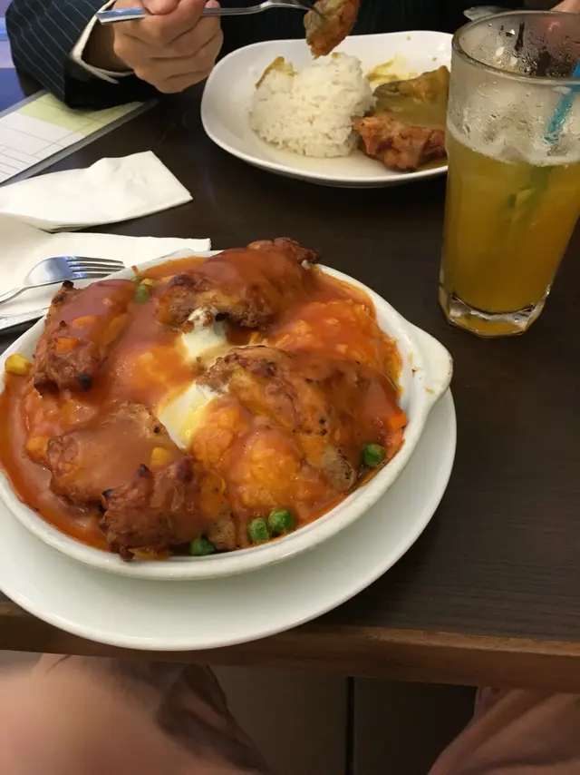有段時間冇嚟過呢間樓下冰室呢間餐廳嘅特色就係, 大部份餐都係用返茄做材料。叫咗啲蛋免治牛肉飯,隻荷包蛋煮得好熟不是半生熟的,味道普普通通啲免治牛肉,幾好食,有夠重嘅蕃茄味,酸酸甜甜的味道,同其他勉之牛肉唔同嘅地方,就係佢有香草味,整體來講,呢個飯到OK,食到好飽,如果係女仔好大機會食唔晒。跟住,又叫多碟小食瑞士雞肶,隻雞肶嘅甜豉油味都幾濃郁,入晒味,唔太鹹,係呢度嘅招牌小食,都值得一試。…查看更多