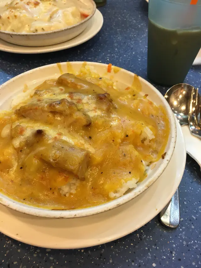 幾年無去過的餐廳我覺得幾好,因為佢餐前會忌廉湯同麵包送上麵包係普通甜包,奉上牛油查,味道ok忌廉湯,又香又滑,帶有甜味,真係吾錯,只有少少咸味叫左碗咖哩焗雞扒飯,配奶茶佢沖既奶茶真係幾香幾滑,同奶茶鋪comebuy 差不多,其他餐廳好多都飲吾到呢隻味個飯,係用珍珠米,但個咖哩就辣左少,可能呢隻辣吾岩我,辣左啲,我要無咁辣的入口味道都吾錯,好食,除了辣之外可以見到咖哩汁好多,飯又多,女仔就可能食可能吾晒雞扒焗得幾好,口感吾乾,帶有油加埋啲飯送入口,係好食如果呢間鋪係我屋企附近,我都會幾中意去…查看更多