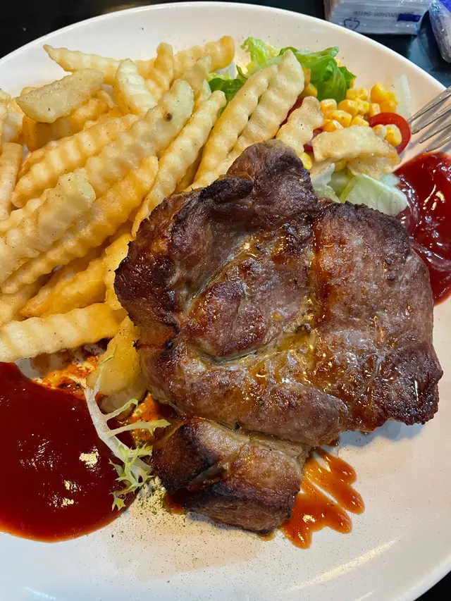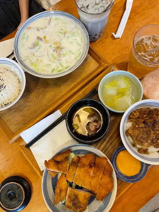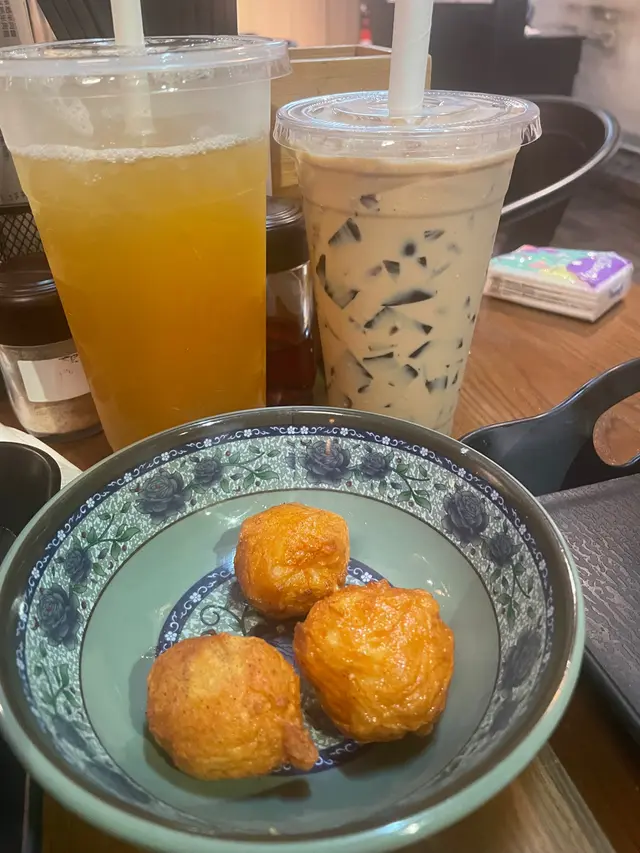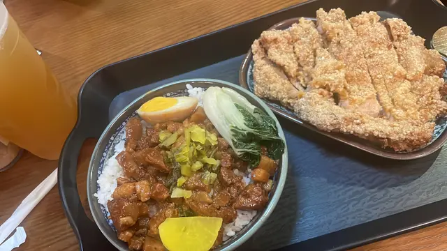 午餐去到工廠區搵食,見有同事食過就過嚟環境都唔錯,唔會坐到太迫我就叫咗炸排骨便當,估唔到個飯係滷肉飯有菜有肉,炸排骨會太厚粉,好味同事就叫咗起司雞扒便當,芝士份量夠,有拉絲的感覺 ,食完都好夠飽😁另外叫咗兩杯嘢飲,一杯鳳梨綠茶,一杯仙草凍奶茶,我個杯綠茶就好好飲,唔太甜,恰到好處,另外個杯同事都話好味另外嗰個就係花枝丸,炸得幾好,花枝味十足另外叫咗個鹽酥雞小食,皮薄肉嫩,鬆脆可口整體嚟講都好飽好滿足…查看更多