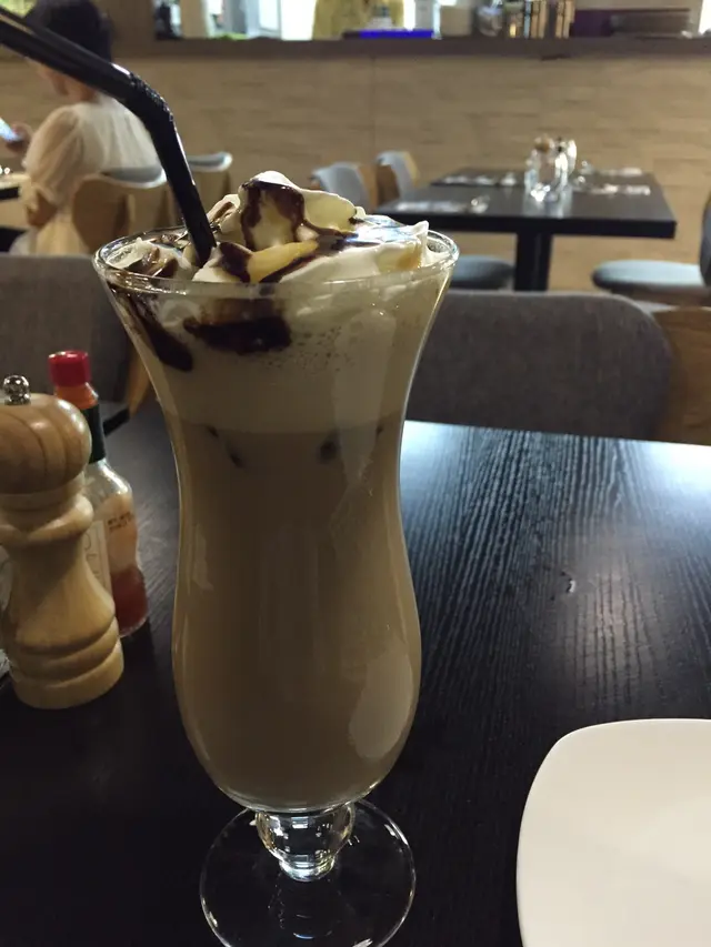 2樓一出LIFT就會見到呢個咁SHARP既餐廳門口,望住啲野食相都已經好肚餓,好想食。可能因為閒日,七點幾八點去到,等左幾分鐘好快就入得。餐廳黎講,面積算幾大,入到去裝修同氣氛都唔似係係工廈。坐低之後,望住個餐牌樣樣都好想試,一路都揀唔到,問左老闆娘有咩介紹之後就叫左一個飯一個小食一杯飲品。最先到既就係呢杯野飲,本身無咩期待同普通焦糖朱古力有咩分別,但一試就飲到真係略帶鹽味,所以就算有好多CREAM都唔會覺得好甜好膩,幾特別。