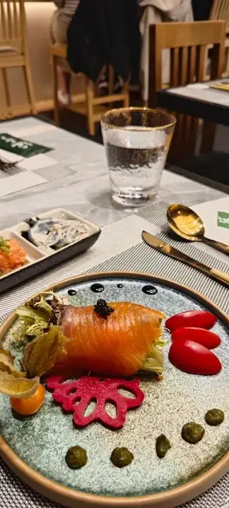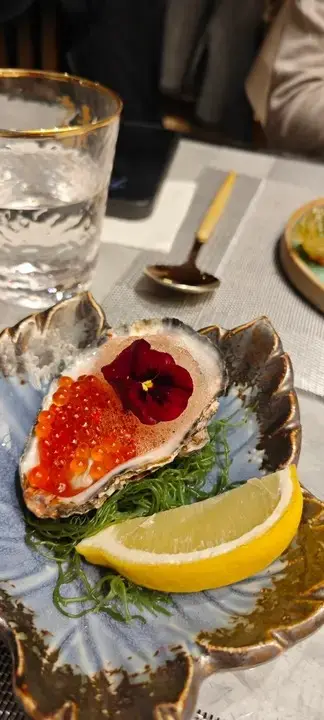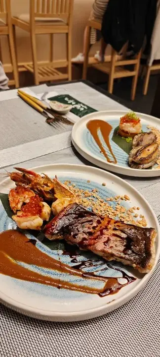 餐廳環境舒服,燈光柔和,適合聚會和慶祝。前菜沙律用煙三文魚配沙律菜、龍珠果和茄仔,加黑醋清爽開胃。蘭王溫泉蛋配魚子醬,攪勻後入口滑溜,味道融合。鯛魚刺身鮮甜柔軟,配少量wasabi和豉油更突出鮮味。海鮮鐵板燒有虎蝦和白鰻魚,口感分明,配龍蝦醬惹味。牛肉方面,澳洲牛柳粒肉汁豐富,配炸蒜和竹炭鹽;美國安格斯牛肉薄燒卷油脂香濃,包炸蒜更添味道。花膠菊花豆腐湯鮮甜清香,豆腐滑溜,花膠提升層次。黑松露炒飯粒粒分明,香氣突出,配三文魚子、飛魚子和虎蝦。甜品檸檬雪葩和柚子雪葩酸甜清爽,為整餐作結。整體食材新鮮,師傅手藝好,服務貼心,適合生日或朋友聚餐,令人想再來。…查看更多