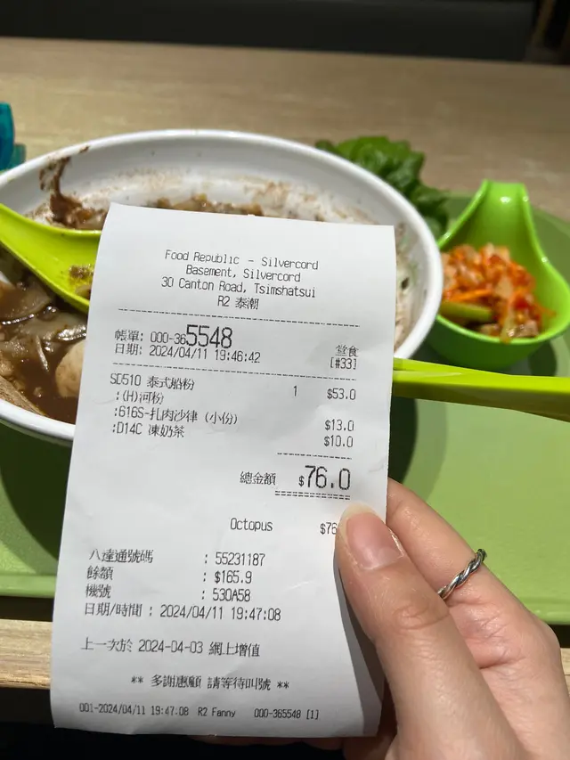 叫左個船麵,加錢要左泰奶同札肉沙律。👉🏻船麵得個鹹字,勁多碎骨喺入面,唯一一塊生菜係爛到發霉都擺出來比客食?一啲泰式風味都冇,食完勁渴。👉🏻沙律得個辣字,咩味都食吾出,札肉口感好奇怪,好似食緊素午餐肉咁😂份量細,加十三蚊但得兩啖仔。👉🏻泰奶吾係即沖,係樽裝,飲落不過不失,但好失望,吾係即沖已經輸左,仲要加十蚊。感覺佢啲樽會重用,吾知洗得乾吾乾淨🥴👉🏻環境同衛生方面餐具好污糟,座位都好污糟,地板都好污糟。自取形式,但個餐盤吾夠防滑,一路攞啲野食一路喺盤上滑來滑去,勁驚飛出來淋到自己成身都係。👉🏻服務態度比錢前客客氣氣,比完錢冇人理你。個位置有啲差,所以手機收得差,問佢地Wi-Fi 密碼係咩野,佢地話冇WI-FI 。係咪真係冇,自己睇😬吾會再來食,我覺得間野啲質素對吾住米芝連個朵同依個價錢🙂…查看更多