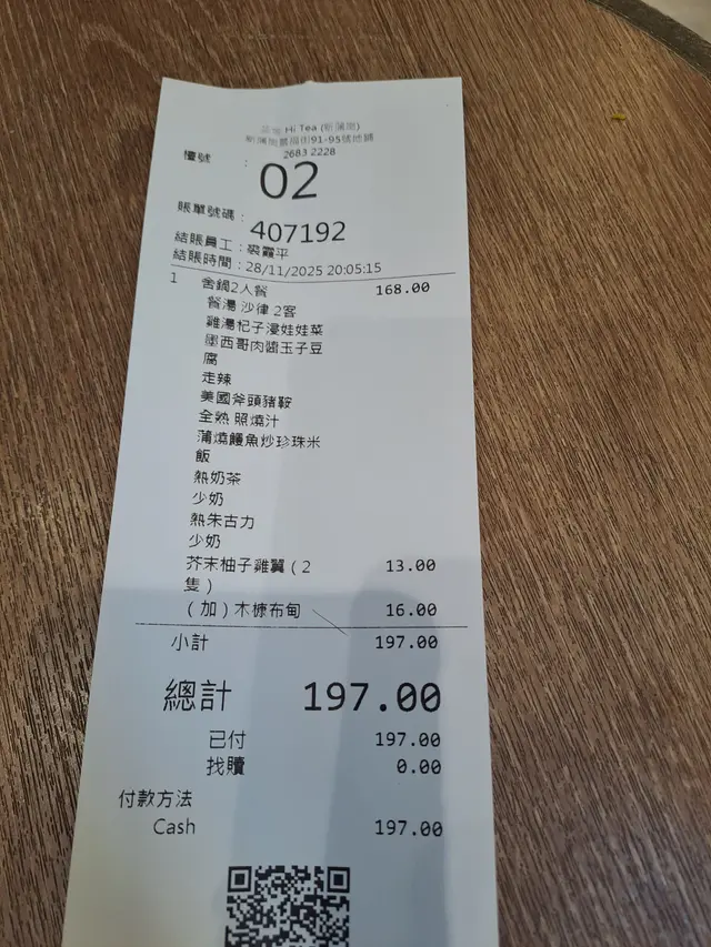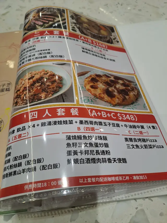 Mikiki商場附近都好有多餐廳其中呢間餐廳有店員係門口熱烈推介抵食套餐實體餐牌多元化用QR code落單 清晰方便快捷咁岩套餐有晒想食既2個主食 平過單點仲要包餐湯 沙律 中式菜 豆腐 同飲品!2人套餐 $168是日南瓜餐湯 仲加左幾粒麵包粒沙律菜同沙律醬份量剛好雞湯杞子浸娃娃菜 4棵對健康腸友好墨西哥肉醬玉子豆腐 (軟豆腐) 可以走辣美國斧頭豬鞍 點餐系統有全熟/7分熟/不見血選擇不過店員話豬鞍一定係全熟有幾款醬汁選擇 我地揀左照燒汁 比較稀身大大件厚身豬鞍 肉質嫩滑冇筋炸南瓜粒👍🏼 仲有🌽🥦配菜蒲燒鰻魚炒珍珠米飯鰻魚份量唔少大量菇菌配料熱奶茶 ok熱朱古力 偏淡可以揀少奶追加跟餐小食/甜品芥末柚子雞翼 2隻 +$13 炸到外脆 醬汁幾夾木糠布甸 +$16👍🏼…查看更多