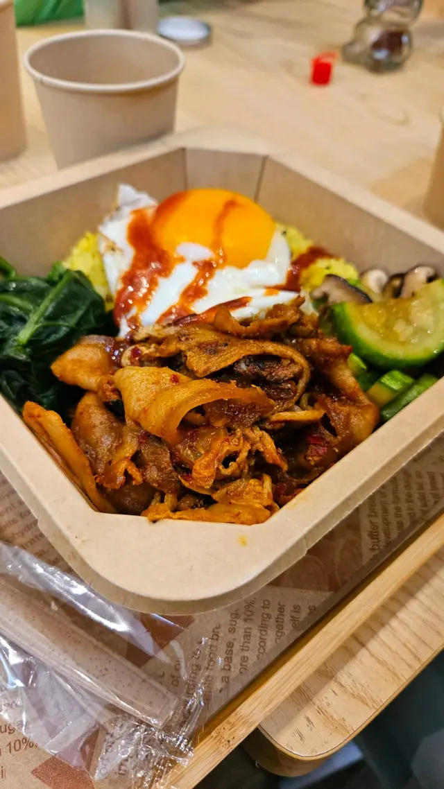 地段清靜, 環境舒適, 適合一家大細或良朋好友到此一聚, 共享美好時光!是日與朋友慶祝生日, 驚喜一浪接一浪!店主細心佈置, 掛上"HAPPY BIRTHDAY", 令壽星女驚喜萬分, 開心不已!午餐選了「韓式泡菜豬肉拌飯」, 泡菜配豬腩肉~不油不膩, 伴有新鮮菠菜、香菇和翠玉瓜~健康有益, 黃薑飯配香煎太陽蛋~蛋香提升味道一絕, 份量和味道配搭得剛剛好, 有驚喜!飯後慶生, 店主特意新鮮烤焗「流心果仁撻」, 驚喜的是流心, 是店主自家秘製糖漿, 不甜好香, 牛油曲奇撻皮, 酥香味美!值得推介必定要試!溫馨提示:如果想食新鮮烤焗「流心果仁撻」, 必須提早預訂!…查看更多
