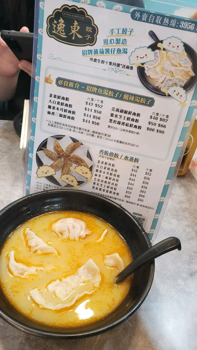 Lunch同同事去左食逸東餃子,1共有7款餃子可選擇,可以選擇湯餃或煎餃,而且仲可以加個面底,我揀左粟米芝士鮮肉餃,好驚喜,咬開1啖已經食到好濃郁嘅芝士味👍👍👍而最加分地方係個湯底,番茄薯仔魚湯,好鮮甜,推😁…查看更多
