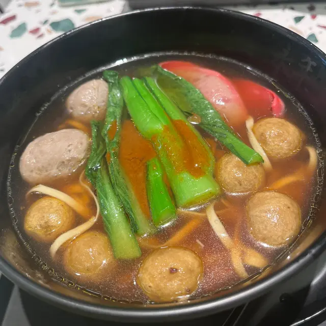 麵食我覺得比較抵,因為我可以50幾蚊食四個送。我叫左紅腸,魚蛋,牛丸,菜心。四個味道各有不同。紅腸是小時候吃的味道,魚蛋是街邊小吃咖喱魚蛋的味道,牛丸都幾彈丸,有汁。菜心有嚼勁,爽,新鮮。面都有好多選擇,我好難得見到面檔有寬面選擇,所以我選擇左寬面。湯是以前食到的味道,好似帶回翻小時候的記憶像爸爸的味道。