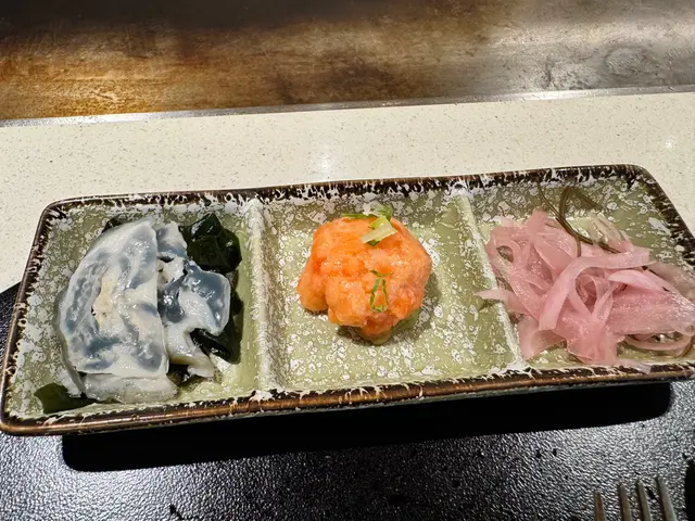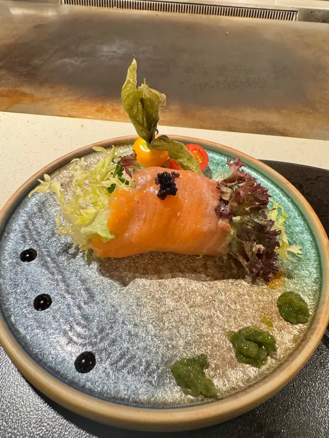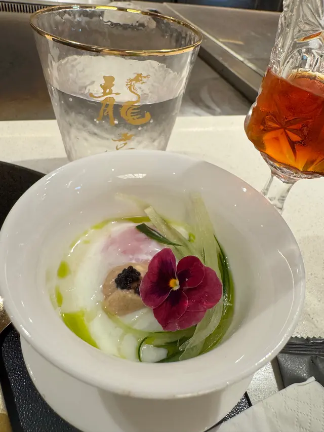 好耐冇食鐵板燒,就係OpenRice搜尋一下。見到依間龍亭,都幾多好評,而且價錢合理,見到OpenRice,仲有套餐價添!今日就去食吓店員推介話呢隻梅酒好飲,所以我哋叫咗一支share ,的確非常濃味,而且$93價錢合理。首先,前菜方面,左邊漬物咁,有食緊骨膠原嘅感覺,幾特別。中間嘅係三文魚他他。沙律方面,佢就係煙三文魚沙律,店員有介紹話蔬菜係有機農莊採摘💕跟住就係海膽魚子蘭王蛋,眾所週知蘭王蛋品質高,再加埋海膽同埋魚子,製作食溫泉蛋。鯛魚刺身,味道鮮甜,新鮮。咁啱我哋坐喺鐵板前面,仲可以欣賞到師傅嘅表演🤩跟住就係我最鍾意嘅海鮮二品!鮑魚竟然有兩隻,煮得剛剛好,唔會太熟。煮帶子嘅火候都控制得好好👍🏻澳洲牛柳,食落滑嫩。配有炸蒜可以一齊食。最後仲有黑松露炒飯!師傅炒飯時,仲整咗個心形俾我哋打卡😹好細心。炒飯上面還有魚子同埋蝦,而且黑松露落咗勁多所以好夠味!甜品方面,有柚子雪葩,最驚訝係個爆珠,原來有紅豆係裏面😻唔使$1000一個人,就係中環食到鐵板燒。性價比高,下次再帶屋企人嚟食。🩷…查看更多