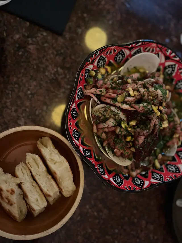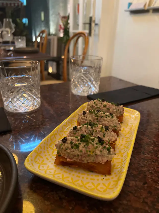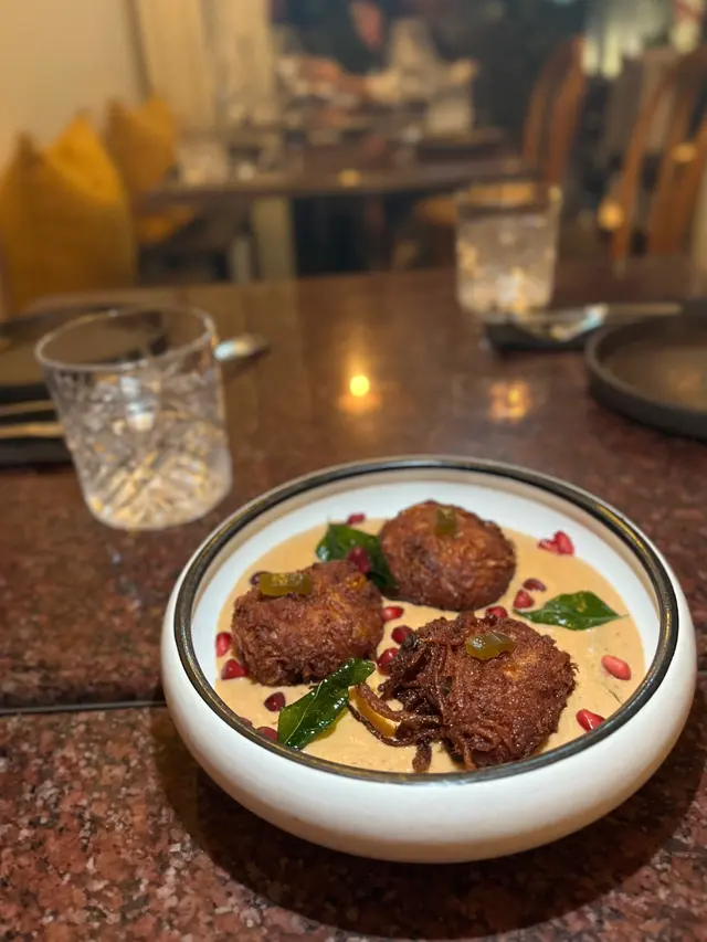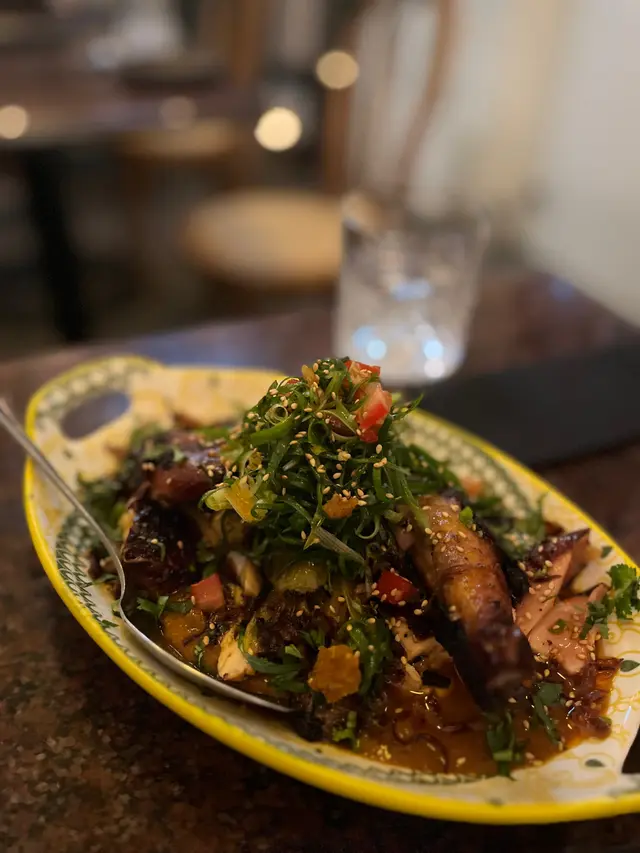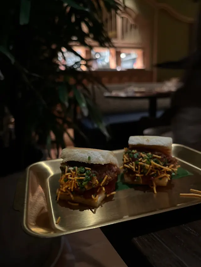 Quite a small bistro with interesting playlist🤣🤣🤣- beef tartare🌟Interesting and lighter version of beef tartare, but the potato pavé can be crispier- duck kanda bhajiSurprisingly not heavy (prob cuz of the onion fritters)Tho a bit over friedLove the gravy😍- butter chickenNot really butter chicken to me🤔 more like roasted chicken- stuffed calamari🌟🤩🤩🤩yum. Esp the broth!! Full of umami from clams🤩and the little chunks of pancetta🤩- chai balakvaFilo a bit too hard😕and not chai enough…查看更多