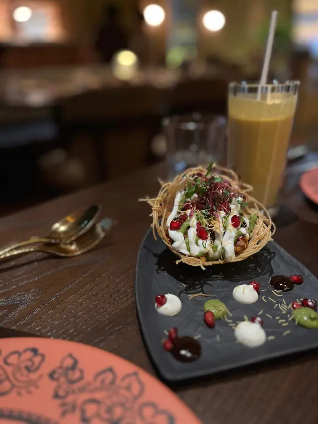 The long awaited🤩🤩Butter chicken🌟Heard great review on it and we aren’t disappointed😋😋All the flavours and intertwined well🤩as well spiced up by the smokiness🤩🤩Chicken was tender enoughEasily our fav dishLamb chopOrdered this cuz i LOVE the lamb chop from chaatNgl i like the chaat’s betterThe lamb here was kinda like bouncy?🤔also lacking the lamb or smoky flavourThe two appetisers were quite refreshing😋But the flavours were pretty similar just with different texture🤣 so i’ll suggest only getting one of these lolGarlic naanMango lassi🌟Love it cuz the 100% mangoJust enough sweet + sourAnd also the unique grassy scent from fruit🤩ChaiHmmm indeed aromatic enough from spice n teaBut too sweet🙈Also it tastes somewhat like formula milk?🤔…查看更多