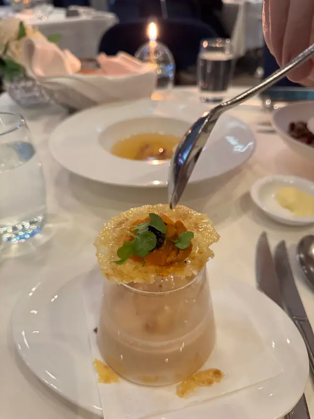 每年的重要日子维港海景酒店都一位难求!今年终于也是被我抢到了!!!🔥这次先来试吃下食物,目测这家维港视野有270度(位置真的好难约!😭)虽然重点是看烟花🎇但菜品也意外的很惊艳!!前菜是帝王蟹🦀️蛋泡沫配24个月的康帝芝士脆片+海胆搭配的好棒!海胆也好好吃!💫烟熏鳌虾🦐配石榴巴马火腿清汤蚬汁果冻这道的搭配有点麻麻主菜都没得说,黑松露北非小米配和牛牛舌&牛小排&慢煮伊比利亚猪眼肉配柚子沙律牛舌炖得超软糯!!黑松露香气扑鼻小米颗粒感十足~搭配龙虾汁真的绝猪肉也嫩到不行~柚子清新解腻柑橘和杏桃果蓉带来一丝酸甜太点睛了甜品是香柠檬芝士蛋糕🍰绵密丝滑➕浓厚柠檬果蓉,酸得好清爽,还配了碧根果颗粒~幸福💖…Read More