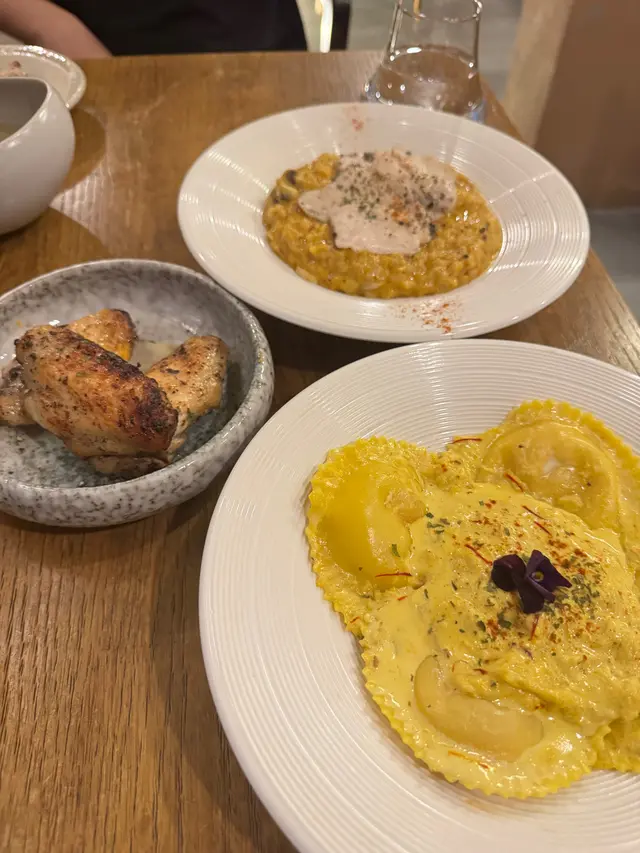 在donki逛完随便找了家意面楼上店果然绝了!!黑松露迷直接疯狂🤤 好吃到不想放手!!✨黑松露鸡翅,真的不要错过!就为这个鸡翅都值得来一次!上桌就闻到超浓郁的松露香!鸡翅个头巨大 烤得外皮焦脆,里面肉汁会biu出来还点了🦀番红花蟹肉手工意大利饺子和🎃白松露鸡胸配南瓜意大利饭手工饺子塞满了蟹肉,番红花酱汁好浓郁,意大利饭的鸡胸肉有少少不入味,但第一口好惊艳!浓浓南瓜味+芝士的creamy,配上白松露的香气直接💯今日芝士摄入过量!🍮甜点的提拉米苏,咖啡🍸味很浓郁 口感湿软绵密,马斯卡彭奶酪香香~吃完才发现露台好漂亮!下次再来吃鸡翅!路过铜锣湾快冲!!#food #香港美食 #港硕 #香港餐厅推荐 #香港探店 #香港旅游 #香港打卡 #铜锣湾美食 #港漂 #香港…Read More