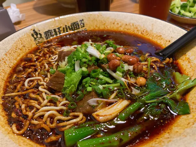 朋友多番介紹下,我決定一試這間麵店!HH買的風味是四川風味,麻辣、香辣為主!很喜歡吃辣的我問店員那款最受歡迎,他推介我吃招牌豌豆拌麵和瘋狂牛肉麵。我毫何不猶豫地選擇,因為我最近有點想吃牛肉,而且看見隔離枱的人也是吃牛肉麵!當我的牛肉麵上枱的時候,我的眼睛發亮了!無論是嗅覺還是視覺的享受也拿到70分,當吃了一口就覺得有90分!那個湯底非常之濃,簡單一點來說是「重口味」!出色!每一口麵也掛滿了香濃的麻辣醬汁,而且麵質彈牙入口香滑!真的好吃!牛肉是用了牛展肉入味之餘還有肉質,我有四至六件左右,吃了也滿足!…查看更多