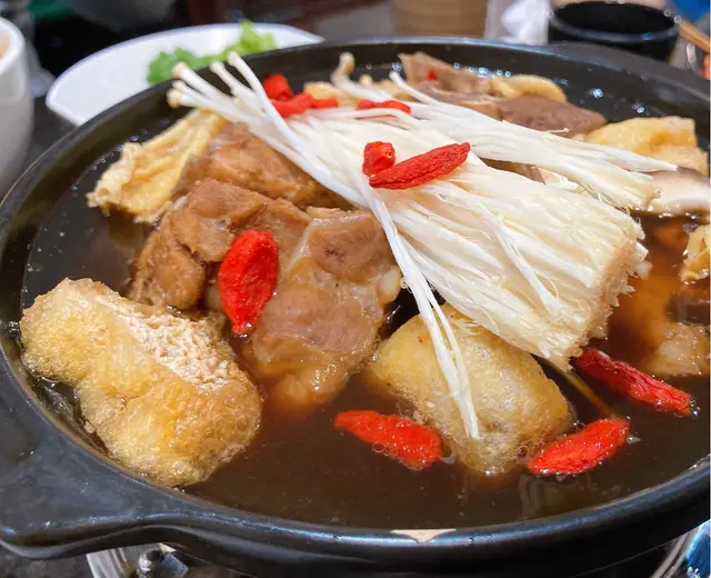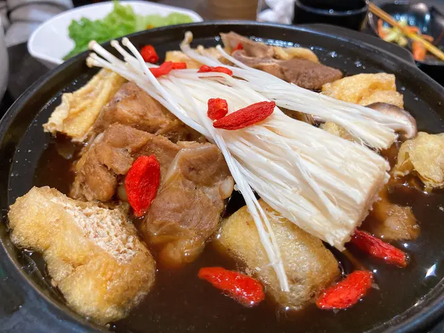 行開附近諗住搵一啲特色小店, 咁啱發現呢間以肉骨茶為名嘅小店。喺門外見到仲有午餐優惠,就一於食呢一間。餐廳位置都好闊落,而且好乾淨!老闆娘都好有禮貌而且好好款待!我叫咗呢一個招牌肉骨茶餐,加埋嘢飲都唔使$70!分量幾多,裏邊唔單止有排骨、豆卜、金菇仲有杞子,浸係肉骨茶湯,天氣凍,食完個胃暖粒粒!肉骨茶嘅味道唔會好濃, 啱晒唔食得重口味嘅朋友。配埋白飯食唔錯!再加$15就有多兩串沙嗲價錢都幾抵,唔使好多滿足下味蕾!…查看更多