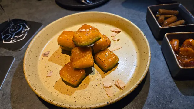 ✨喺中環返工放工之後,aoao係我同朋友聚腳嘅首選💯!地點超方便🚇,環境潮流型格🕺,坐喺露天位聽住DJ打歌🎧,氣氛chill到爆🍹~簡直係忙碌一日嘅最佳釋放😌🌃。 🍣食物方面: - 赤貝包蘆筍+長蔥絲 🥢:爽脆清新🌱,層次感好豐富✨ - 炭燒鰻魚 🐟🔥:碳香十足,肉質有咬口又彈牙😋 - A4和牛三文治 🥩🥪:牛味濃郁多汁🤤,配上竹炭麵包🖤,層次感爆棚,真係完美👏👏 焦糖南瓜,有焦香,南瓜味濃,口感豐富。🍰甜品方面: - 抹茶芝士蛋糕 🧀🍰:香滑濃郁,入口即融💛 - 蜜瓜大福 🍡:軟糯清新口感超正,令人一試難忘😍 🍸飲品方面: - Onyx 🥂:酒體細膩,入口清爽,帶少少神秘感✨ - Jade 🍸:色澤翠綠,味道清新又有層次🌿,同美食好夾👍 每次嚟到aoao都覺得味蕾被滿滿寵愛💖,同時又可以完全放鬆身心🛋️~真係中環必試日式Fusion餐廳之一🔥!…查看更多