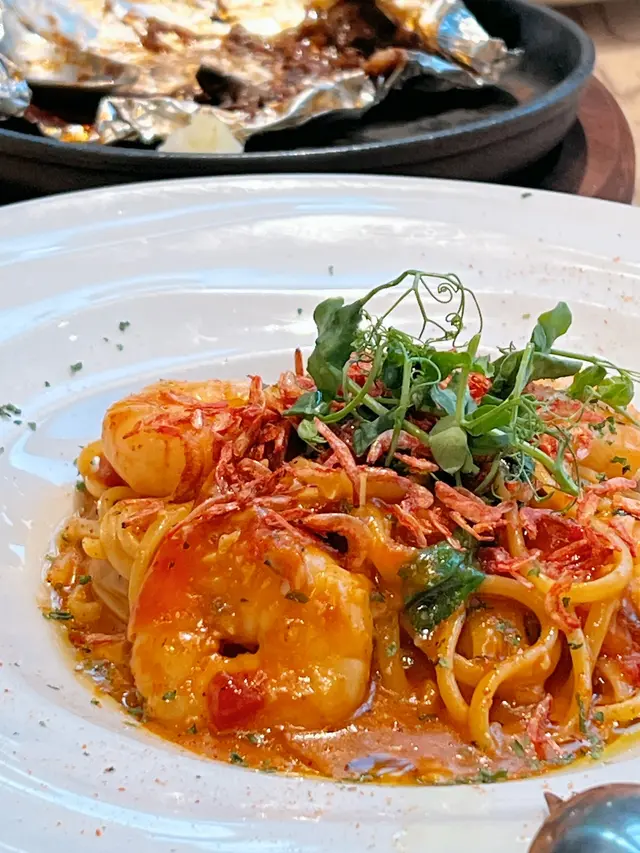 Happy Friday,諗咗好耐今晚食咩好,無意中經過新鴻基中心,見到一間裝修得好舒服、好chill嘅餐廳,於是就決定同朋友入去試吓。果然,呢個決定無令我地失望!一入去,餐廳嘅氛圍用燈光就已經令我哋覺得好chill、好放鬆,真係好適合返咗成個禮拜工去食。加上,服務員都好友善同專業,佢哋好快就幫我哋安排好座位,仲詳細解釋咗menu上嘅推薦菜式。我地首先試咗佢地嘅招牌即叫即整漢堡扒,真係好有驚喜,一啖咬落去,入面鬆化得嚟又結實,肉汁仲多到爆出嚟咁滯!然後,仲試咗濃郁紅醬意粉配香煎大蝦,大蝦煎到外脆內嫩,而意粉每條都掛滿醬汁,口感超滿足。2個人最後賣單人均$200蚊左右😂但已經食到勁飽。係港島用呢個價錢食到食物咁高質,服務態度又好嘅餐廳,真係一個值得推薦嘅餐廳。…查看更多