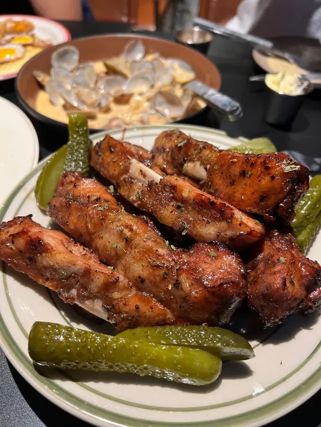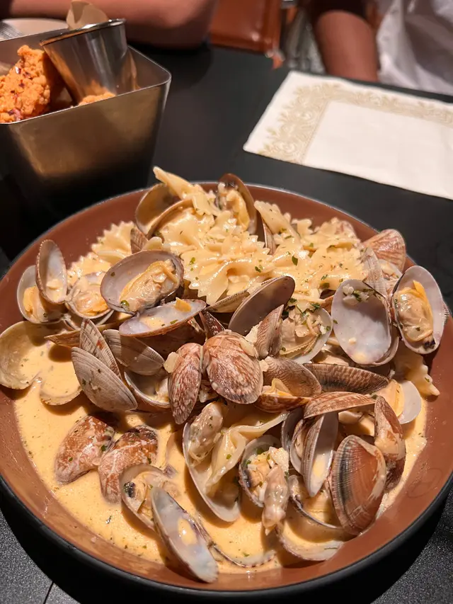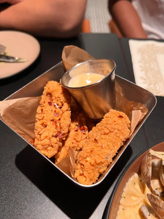 牛油果芒果蟹肉他他蟹肉好新鮮,牛油果配芒果味道淡淡的前菜一流⭐️⭐️蜆肉蝴蝶粉非常推介 很欣賞他每一隻蜆殼都有蜆肉蝴蝶粉比較少 主要食蜆肉👍🏻❤️豬仔骨(8支骨)配酸黃瓜豬仔骨啱哂男士們嘅喜愛,或者食肉獸必食。醬汁好好味,令人吃完一條接一條😂😬👍🏻豬仔骨嘅side dish 揀咗奶油蒜蓉蝦,鵪鶉蛋和帕瑪森起司🧀 賣相睇落都好好味,奶油蒜蓉蝦都好入味 又去了殼 好方便士拉差雞翼名字很有趣 但外表平平 簡單一款辣的炸雞翼百利甜黑糖奶一杯改了好聽名字的朱古力奶 好喝提拉米蘇蛋糕入口很重提拉米蘇百利甜酒味道金 瑪格麗特很漂亮的一杯cocktail 用玫瑰花冰作點綴少少酒味 很適合小女生打卡🤳🏻整體餐廳環境優雅 適合聊天🥰三五知己一起聚一聚 很不錯的選擇…查看更多