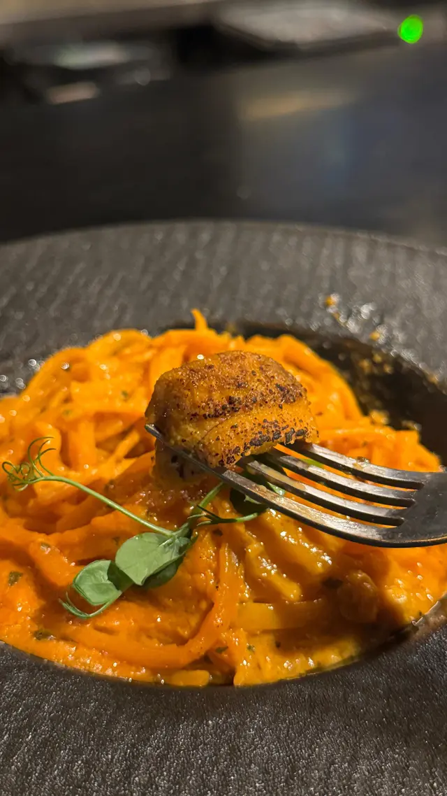 最近去咗尖沙咀 The Pearl,餐廳出咗 全新菜單,有 14款以上新菜式,整體感覺係走高質精緻路線,適合同朋友、情侶慶祝/生日/紀念日。👨🍳 服務同氣氛員工友善又有型,帶啲時尚cocktail bar vibe,上枱會逐款雞尾酒同你講解材料同味道走向,感覺 專業但唔高傲,令成個用餐體驗加分。🟡 香煎帶子配蜆汁鷹嘴豆蓉、三文魚籽 $138帶子煎得靚,邊位微焦帶香氣,底部鷹嘴豆蓉口感綿滑,三文魚籽咬落啵啵聲。細膩但味道層次豐富。🦐 阿根廷紅蝦肉吞拿魚蓉他他配三文魚籽及黑魚籽 $128超推介!!紅蝦鮮甜、吞拿魚蓉軟滑,三文魚籽 + 黑魚籽雙重鹹鮮點綴,整體味道balance得好好,有fine dining感。🍝 北海道直送海膽扁意粉配自製海膽醬 $218海膽香氣夠prominent,唔腥,濃但唔膩。扁意粉掛汁力高,每啖都有海膽香。想食濃厚海膽意粉嘅人可以放心落單,呢個都好高質 。🥩 日式豆腐糕寶雲酥羊肋排配法式千層薯批 $228羊肋排嫩而不羶,外層酥皮增加口感。千層薯批,唔同平時出面食開嘅薯蓉,幾特別又好食。🍹 Cocktails🔸 Daisy Pop $140幾清新、花香感,女仔應該會鍾意。🔸 Carmine Santo $150味道成熟啲,有層次,有啲木嘅香味,酒味突出但順口。…查看更多