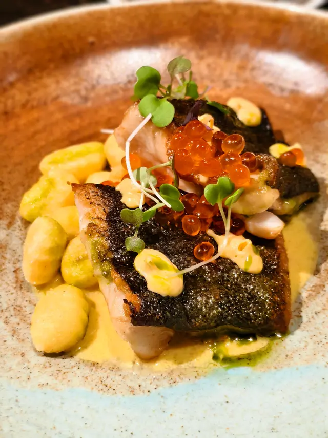 香煎黑鱈魚配鹹蛋紅花忌廉汁