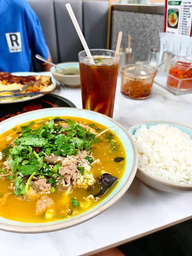 今日同家人過嚟土瓜灣,經過見到呢間茶記裝修幾靚,就入咗去食飯,叫咗幾款招牌菜式,樣樣都充滿驚喜! 🍛 咖喱牛腩煲 $98熱辣辣用砂煲上枱,香氣撲鼻!牛腩炆到淋滑入味,筋位膠質豐富,薯仔吸盡咖喱精華。最正係可以按喜好調辣度,今次叫咗小辣,香濃得嚟唔會太刺激,送飯一流! 🥬 金銀蛋浸時蔬 $83健康之選!時蔬新鮮爽脆,皮蛋同鹹蛋黃金比例,湯底清甜唔油膩。最欣賞係佢哋將皮蛋煮到恰到好處,蛋黃流心效果完美。 🍹 凍檸檬茶 $11(少冰少甜) 茶底濃郁得嚟唔澀,檸檬新鮮,少甜嘅甜度啱啱好。冰量減少後,飲到尾都保持到濃郁茶味,解膩一流! 🍍 鮮菠蘿拔絲咕嚕肉 $88一上枱就聞到酸甜香氣!咕嚕肉炸得外脆內嫩,拔絲效果做到啱啱好,拉絲得嚟又唔痴牙。新鮮菠蘿清甜多汁,中和返油膩感,仲灑咗少少芝麻增加香氣。 環境方面,雖然裝修簡單但乾淨企理。卡位坐得舒服,冷氣夠凍。伙記服務貼心,見我哋帶住小朋友,主動提供兒童餐具。 欣賞佢哋嘅金銀蛋浸時蔬,將家常菜式做得咁精緻,同埋個拔絲咕嚕肉嘅創意。下次會再嚟試佢哋其他招牌菜!…查看更多