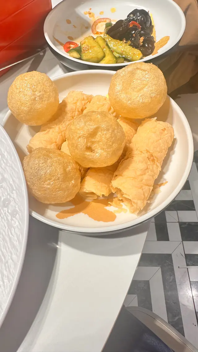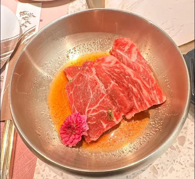 餐廳: 西塔老太太烤肉拌飯 (新都城中心二期)地址: 將軍澳寶琳欣景路8號新都城中心二期1樓1040-41號舖同朋友叫左西塔熱銷二人餐三筋肉 (厚切)碟上的三筋肉(厚切)以其豐富的色澤和誘人的擺盤引人注目。肉片厚切,呈現出鮮紅與白色交錯的美麗紋理,油脂分布均勻,讓人一眼就能感受到其優質的肉質。肉的表面光滑,散發著誘人的肉香,顯示出新鮮度。三筋肉的形狀不規則,邊緣略微卷曲,增添了幾分自然的美感。碟中還淋上了一層淡淡的醬汁,金黃色的液體在燈光下閃爍,為這道菜增添了光彩,並讓人期待其味道的豐富層次。整體擺盤中,還有一朵鮮花作為點綴,讓整道菜看起來既精緻又雅致。這些肉片在烹煮時,油脂會慢慢融化,釋放出濃郁的香氣,讓人忍不住想要品嚐。每片三筋肉入口即化,帶來豐盈而柔滑的口感,融合了肉質的鮮美與油脂的香醇。這道菜不僅是食肉者的最愛,更是一種味覺的享受,適合搭配各種醬料或蔬菜,讓每一口都充滿驚喜,令人回味無窮。海帶湯碗中的海帶湯散發出清新的海洋氣息,湯色呈現出深綠與透明相間的迷人色彩,讓人感覺既清爽又滋養。湯面上漂浮著幾片柔軟的海帶,質感滑嫩,彷彿在輕輕搖曳,帶來一種自然的韻味。湯中還有細切的薑絲,增添了香氣,使湯品更具層次感。薑絲的微辣與海帶的鮮味相互融合,讓整碗湯的味道更加豐富。湯面上偶爾浮現的細小泡沫,顯示出湯品的熱度與鮮美。這道海帶湯不僅顏色誘人,還是健康的象徵,海帶富含膳食纖維和礦物質,搭配清湯,讓人感受到天然的滋味。每一口湯都讓人心情愉悅,特別適合在寒冷的日子裡品嚐,溫暖身心。整體來說,這碗海帶湯不僅美味,還是一道令人感到安心的家常料理。老太太特色肥牛碟上的老太太特色肥牛以其豐富的色澤和誘人的擺盤吸引了眼球。這些肥牛片厚薄適中,肉質鮮嫩,呈現出鮮紅與白色交錯的美麗紋理,讓人一眼就能感受到其優質的肉質。肥牛的表面光滑,油脂分布均勻,散發著豐富的肉香。這些肉片在光線下閃爍著微微的光澤,顯示出其新鮮度。擺放在金屬碟上的肥牛片如同藝術品般層疊,整齊而富有層次感。在烹煮過程中,當肥牛片與熱鍋接觸時,油脂慢慢融化,釋放出濃郁的香氣,讓人垂涎欲滴。每片肥牛都能在口中瞬間化開,帶來豐盈而柔滑的口感,讓人感受到肉質的鮮美和油脂的香醇。這道菜不僅是肉食愛好者的最愛,更是一種味覺的享受,適合搭配各種醬料或蔬菜,為每一口增添不同的風味,讓人欲罷不能。烤杏鮑菇碟上的烤杏鮑菇呈現出一種簡約而雅致的美感。每片杏鮑菇被切成厚薄均勻的長片,顏色潔白,表面光滑,透出淡淡的光澤,讓人感受到其新鮮與質感。這些杏鮑菇的形狀如同優雅的扇子,整齊地擺放在金屬碟上,增添了一絲藝術感。在烤製過程中,杏鮑菇的表面略微焦香,散發著誘人的香氣,讓人瞬間垂涎。這道菜的特點在於其肉質的鮮嫩與多汁,咬下去時能感受到那份滑順的口感,並伴隨著微微的煙燻香味。搭配上適量的調味醬,能夠提升杏鮑菇的風味,讓每一口都充滿層次感。整道菜不僅外觀精美,更是一道健康而美味的素食選擇,適合在聚會或家常餐桌上共享。秘製豬頸肉, 秘製雞爽肉碟上的秘製豬頸肉和秘製雞爽肉呈現出精緻的擺盤,讓人一眼就能感受到其美味。豬頸肉的部分切得薄厚適中,肉質鮮嫩,表面帶有微微的光澤,展現出肉的鮮美與油脂的豐富。搭配的香草點綴在一旁,增添了色彩與香氣。雞爽肉則以獨特的方式呈現,外形宛如一朵花,肉質鮮嫩滑口,色澤粉嫩,讓人忍不住想要品嚐。細膩的工藝和用心的擺盤,讓整道菜看起來既美觀又誘人。整體碟子上還有一片清新的竹葉,為菜品增添了自然的氣息,提升了整體的視覺效果。這道菜不僅是味覺的享受,更是一場視覺的盛宴,讓人期待每一口的美味。香瓮鳳梨肋條碟香瓮鳳梨肋條是一道色香味俱全的美食。這道菜的主角是新鮮的鳳梨,切成圓形,內部挖空,盛載著嫩滑的肋條肉,肉質鮮美,油脂適中,帶有自然的甜味。肋條上還點綴著香草,增添了色彩與香氣。旁邊的鳳梨片則是清新的搭配,讓整道菜更顯清爽可口。整體擺盤精緻,既美觀又誘人,令人垂涎欲滴。喜柿多多碟喜柿多多是一道精緻而富有創意的甜品,擺放在金色的圓形碟中。這道甜品的外觀模仿了柿子的形狀,色澤鮮豔,表面呈現出橙色的霜凍效果,讓人一眼就感受到它的清新與誘人。甜品的中心是綠色的餡料,呈現出柿子的果實特徵,增添了視覺上的層次感。整體口感柔軟,外皮帶有彈性,咬下去時能感受到餡料的豐富風味,甜而不膩,清新怡人。這道甜品不僅美觀,更是一種味覺的享受,適合在聚會或節慶中分享。💰埋單: $405 (二人前, 包加一)