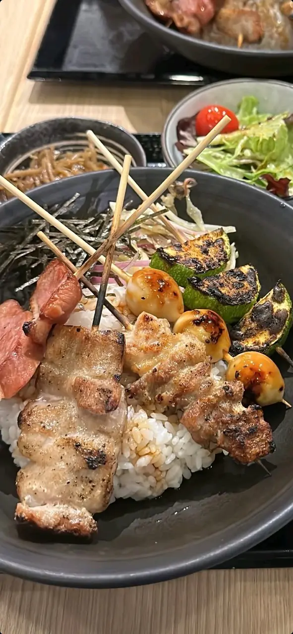 串燒定食,啲脆肉瓜燒到黑哂,兩面都係咁,唉...個兩串雞都係,本身平價貨,仲要燒到勁柴。得個蛋叫正常...認真aeon啲串燒都好過佢。啲好評除左係買番黎的我搵唔到其他解釋... …查看更多