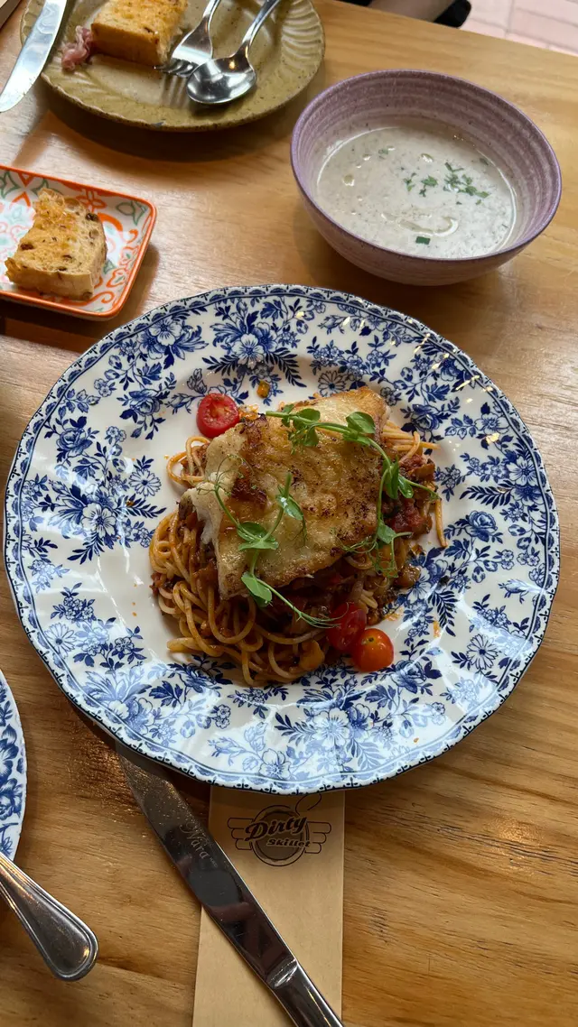 有外表、有內涵嘅餐廳 Dirty Skillet 2024-10-14這家店位置方便,地鐵站幾分鐘可到。餐廳環境舒適美觀,裝修,裝飾都有點少女風。無論主菜飲品,甚至餐湯沙律,所有食物擺盤精美,令人賞心悅目。星期六中午也有中午套餐,那天點了鱈魚意粉和豬鞍扒,意粉質地彈牙,份量足,醬汁豐富,而醬汁內亦含有鱈魚粒,有點驚喜。豬鞍扒熟度剛好,肉質嫩,與燶邊脂肪同吃非常美味。加$35就可以選餐湯或沙律和$58以下的特飲。餐湯那片香草麵包的質素也很高,沙律份量不少,加了幾片巴馬火腿,感覺滿足。台式果茶正常發揮,熱飲的開心選擇。整體非常有驚喜。唯一小缺點可能是店內沒洗手間,要借匙卡往商場樓上的洗手間,如果下雨會稍有不便。…查看更多+ 2以上食評乃用戶個人意見 , 並不代表OpenRice之觀點。讚好分享有外表、有內涵嘅餐廳 Dirty Skillet https://s.openrice.com/QrbT045vN00檢舉 張貼 評分5味道5環境5服務5衛生5抵食用餐途徑堂食人均消費$180 (午餐)