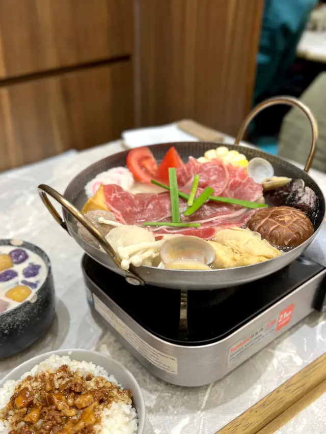 第二次嚟到呢間台式小店,係平日收工食晚飯嘅好選擇👍🏻滷肉A菜 ($28)無菜不歡嘅我再次encore~爽口嘅青菜配埋鮮味肉汁,好開胃😋古早花雕雞卷($42)雞肉圓碌碌又無骨,好有咬口😝花雕味都幾突出🍶一碟有六件,份量幾慷慨~古早起司芋泥肉鬆蛋餅 ($46)起司、芋泥、肉鬆嘅份量同味道都能夠互相平衡,無話邊一款特別搶fo, 感覺不錯😌古早仙草三色芋圓 ($38)清涼解渴,仲可以解辣😝芋圓幾大粒,仙草係條狀,令口感更豐富♥️麻辣雜錦牛肉鍋 ($118)呢個係重頭戲!一鍋有晒多款我鍾意嘅配料,例如娃娃菜、牛肉、豬肉水餃、炸枝竹、鳴門卷🍢落單時有得揀辣度🌶我唔太食得辣,揀咗小辣都覺得係挑戰極限,但又好惹味😂牛肉鍋可以配粉麵/飯,我哋叫咗方便麵🍜最尾先淥嚟食,索晒啲辣湯汁🔥原來成餐飯我都點咗幾款古早味菜式😆又真係幾有台灣味道😚…查看更多