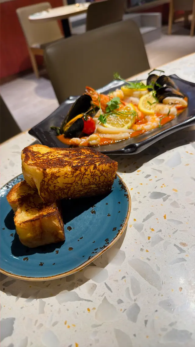 楓糖烤南瓜沙律🧡新鮮清爽嘅沙律菜,淋上楓糖漿仲好味地中海式番茄海鮮配吐司💛大大隻海蝦、彈牙魷魚圈、啖啖魚肉,仲有鬆軟嘅金黃吐司沾啲酸甜番茄醬,食到停唔到口辣番茄蟹肉扁意粉❤️意粉硬度適中、蟹肉唔腥又夠新鮮,辣番茄醬嘅鮮辣夠嗮和味焦糖紅寶石肉桂梳乎厘❤️鬆軟嘅梳乎厘、肉桂香味撲鼻而嚟、甜甜嘅烤焗蘋果,造型設計用心又好食抹茶聖誕圈圈💚抹茶香同奶滑感相輔相成,好飲又暖笠笠聖誕老人朱古力泡泡🤎朱古力濃郁香醇,冬天飲暖入心窩…查看更多