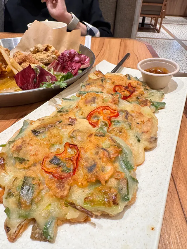 想食韓國野,見到呢間好似幾好坐,嗌咗半半炸雞(濟州柑橘&芝士),雞軟骨,海鮮煎餅,全部都熱辣辣,好新鮮!雞軟骨唔係平時食一粒粒嗰啲炸粉,係真嘅雞軟骨,好surprise!!飲品嗌咗個提子奶蓋綠茶,好特別,好飲~~甜品係開心果窩夫,又係超新鮮!可惜已經飽到有一半要打包🤭…查看更多