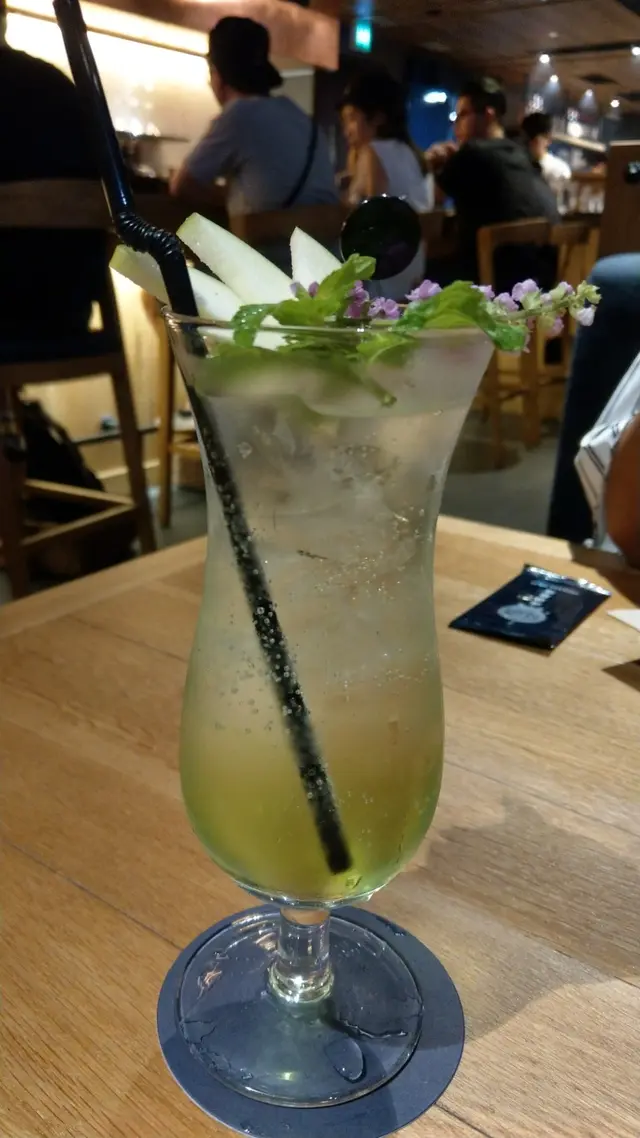 行開海港城發現左依家可以通去郵輪碼頭,而個到有幾間新開嘅食肆,因為冇訂位嘅關係我地要等左一陣位!入到去坐低勁大風吹住個頭,於是叫啲staff可唔可以幫我閂左個風,啲staff係好好人即刻幫我閂,真係要比個like!由於我地等嘅時候已經唸好食咩,所以一坐低就叫左鰻魚炒飯同蕃茄鍋。之後再叫左杯green farmer、綠茶啤酒同wisky coke。Green farmer係青瓜加青蘋果味,個味好fresh好消滯,至於綠茶啤酒個人覺得太苦同好多泡!食物方面…鰻魚炒飯味道足夠,但應該係香料嘅關係食完條脷有啲麻麻地嘅感覺!蕃茄鍋主要嘅食材係蔬菜,有幾舊雞、幾粒肉丸同火腿!食材就一般,冇乜大驚喜,但係可以食得清淡啲,都係唔錯嘅選擇!不過佢9:45就last other,想食嘅就早啲訂位同早啲去等喇!…查看更多
