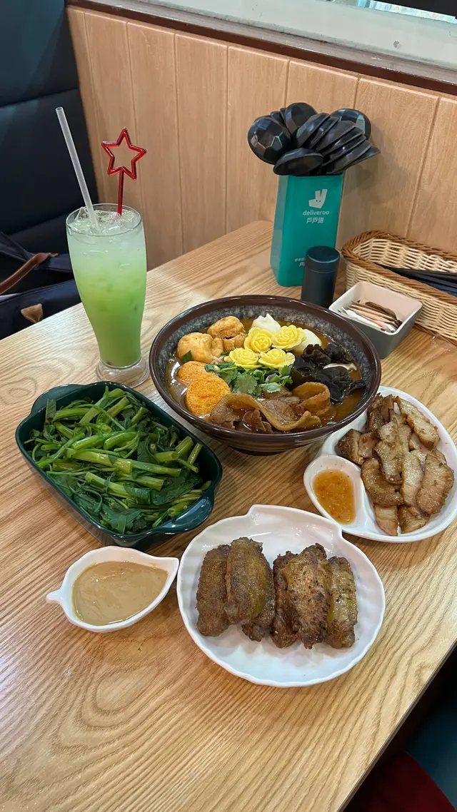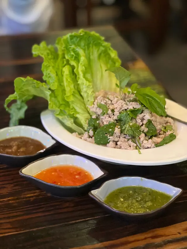 今次同朋友一齊去咗元朗呢一間泰國菜好近元朗體育館同埋元朗劇院.餐廳坐得好舒服 環境好有氣氛都有好多泰國菜可以揀我同朋友揀咗二人餐 再加嘢飲😝.二人餐包括有 肉碎生菜包、泰式燒牛仔骨椒鹽魔鬼魚、馬拉盞炒通菜另外叫咗薄荷青檸梳打、青檸梳打.肉碎生菜包話會有少少辣 不過小編都食到😊肉碎好鬼多 每一包生菜都超級多 食晒啲生菜都仲係有剩.泰式燒牛仔骨超級惹味 係好入味 略嫌多咗少少肥膏不過都係好好味㗎 仲會有碗沙律配埋添🥗馬拉盞炒通菜小編朋友最鍾意 因為真係好入味😙份量有超級多 好味到我哋停唔到口最後就係椒鹽魔鬼魚 唔係度度地方都有得食魔鬼魚之前食過嘅都係燒魔鬼魚 椒鹽都係第一次食炸咗又有特別風味 如果冇咁乾應該會更好味🥰.人均大約$300😊.🥢薄荷葉泰國菜 (元朗)📍元朗安駿里2號怡康大廈地下12-13號舖…查看更多