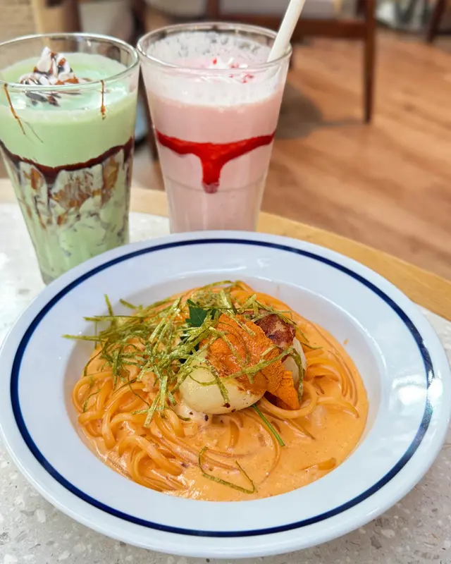 甜品控!女仔必冧甜品推介呢度真係好啱同閨蜜嚟🤭😋環境都好靚好舒服!賣相精緻!滿滿儀式感!嘆住甜品 再打返個靚卡✨Sea Urchin & Scallop Linguine海膽帶子配蟹肉海膽忌廉汁意粉海膽色澤鮮艷 口感鮮美,加埋香煎帶子咬落去軟嫩,配埋蟹肉海膽忌廉汁好creamy!推介👍🏻✨Pistachio American Pancake 開心果美式斑戟開心果控!濃郁嘅開心果醬 加海鹽奶蓋口感豐富滋味❕配有紅桑子吊開心果布甸✨Tiramisu Pancake Ricotta 厚班戟面層係朱古力薄脆、酥皮卷同咖啡糖漿,配香濃嘅提拉米蘇醬,口感層次豐富美味✨Strawberry士多啤梨奶昔✨Mint Chocolate薄荷朱古力奶昔賣相好靚好啱影相打卡…查看更多