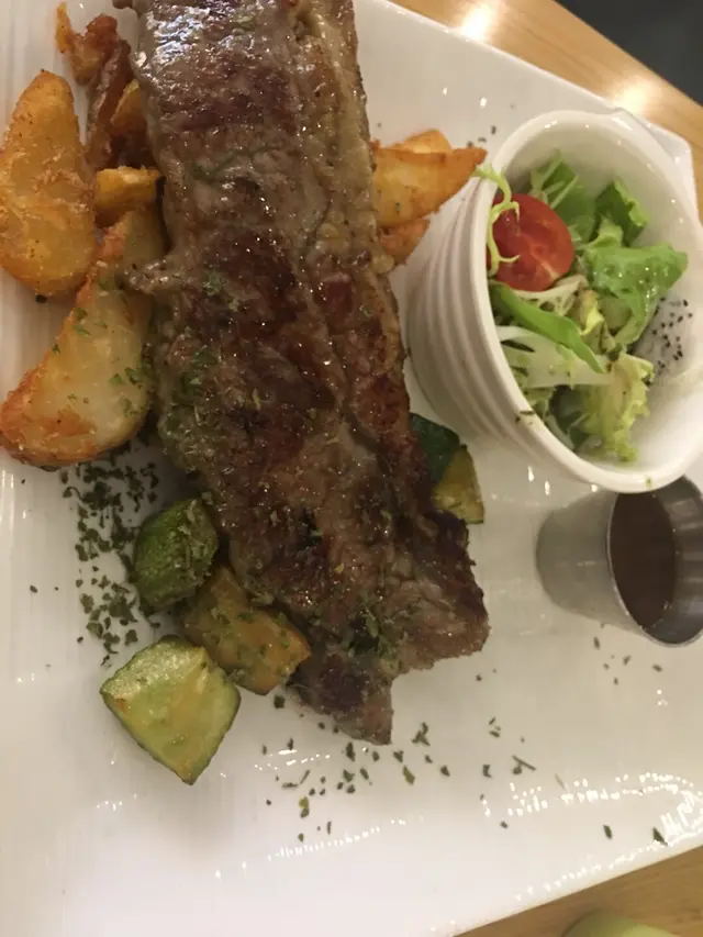 觀塘一到Lunch就好多人呢間可以用open rice book左先牛排叫7成出黎有8-9成但係份量好夠配菜薯角好正😍😍唔似其他炸定先既芝士雞翼就覺得價錢有少少那個 $28 2隻整體上唔錯…查看更多