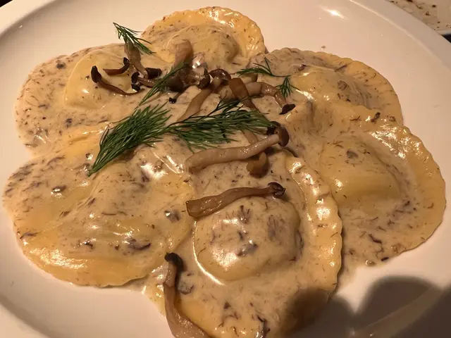 食意大利菜一定要食佢哋嘅雲吞,呢個就係野菌意大利雲吞。佢上邊有啲香草,菇,咬落去中間軟林林,但側邊有少少硬硬地,一開始以為係煮唔熟,問咗經理話其實係佢哋嘅特色,因為如果煮到熟曬嘅話,就會冇口感。點知食落真係越食越好食