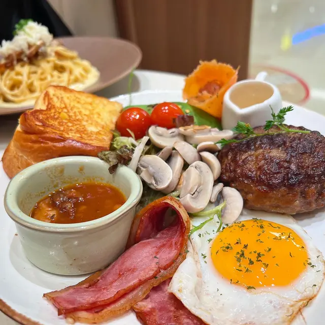 今日去Yoho Mall 行街,lunch 見到呢間梳乎厘幾吸引,等左一陣就入得,之後叫左: 石板街梳乎厘 ~梳乎厘即叫即整,等左15分鐘就熱辣辣上檯,一定要即食,一碟有三件梳乎厘,夠晒鬆軟,蛋味香濃, 配上朱古力漿、mousse、杏仁、曲奇同棉花糖等材料夠晒豐富 漢堡扒全日早餐~滿滿一整碟,漢堡扒好juicy配搭煎蛋、煙肉🥓、法式吐司、煙三文魚、炒磨菇、沙律菜、車厘茄同埋牛油果🥑等等,吐司外酥內鬆軟,充滿蛋香 傳統卡邦尼意粉~意粉煙煙韌韌有嚼口每條沾上汁,份量多非常Creamy