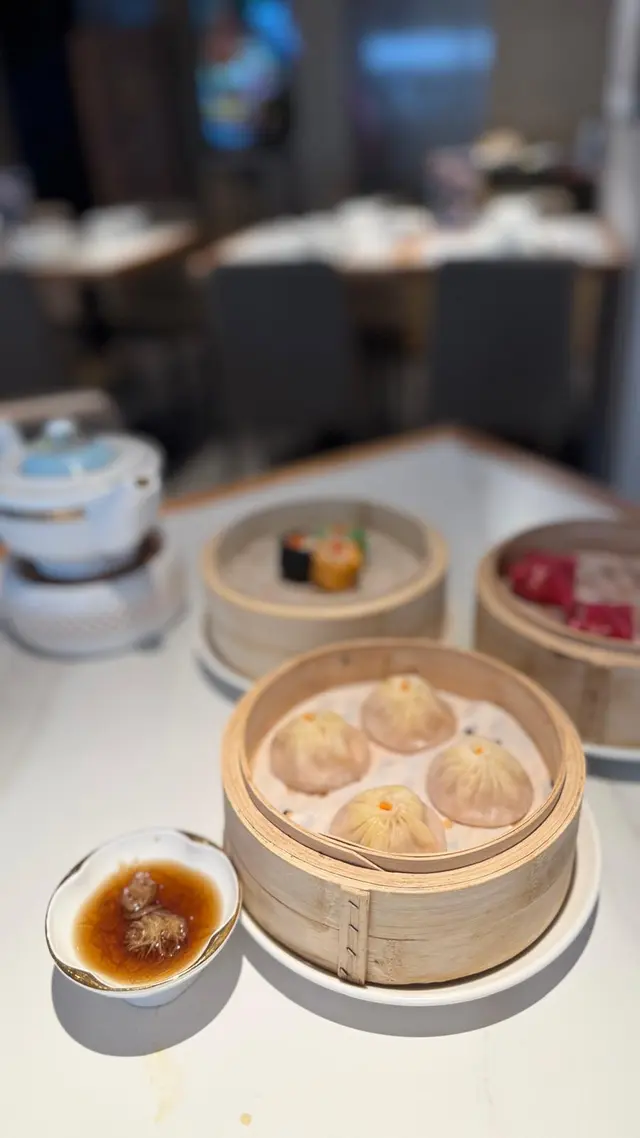 週末嚟到滬玥茗居,主打上海點心,款式多,味道有驚喜,部分餸菜仲幾有創意,值得一試~🥟 餸菜逐款分享:鮮拆蟹粉小籠包(4隻)蟹粉味濃,湯汁飽滿,皮薄唔易穿,咬開有驚喜,蟹香突出臘味蘿蔔糕(3件)煎得香脆,入口有臘味鹹香,蘿蔔絲分佈平均,足料又實在,每啖都食到真材實料三鮮煎鍋貼(3件)底部煎得金黃香脆,咬開即爆湯汁,唔輸小籠包,每隻鍋貼都有十幾摺,手工精緻,賣相靚之餘亦見心機羊肚菌鮮菇餃(4隻)餃皮煙韌,餡料清香,菇味突出,羊肚菌提升咗層次感,幾特別蘋果吉士包(3件)外皮鬆軟,造型圓潤飽滿,賣相真係似足一個小蘋果,好可愛又打卡感十足,內餡係香甜吉士,甜度適中,唔會太膩,啱晒鍾意輕甜口味嘅朋友三色燒賣(3件)造型吸睛,三隻燒賣分別用上墨魚汁(黑色)、菠菜(綠色)同甘筍(黃色)做皮,天然色澤好搶眼;入面仲包咗粒黑蒜,味道香濃,幾有驚喜白茶流心芋球(4件)甜品之選,外層係綠茶同白茶炸麵團,酥脆香口,內裡芋泥細滑,流心效果唔錯,甜度啱啱好🪑 餐廳環境寬敞,裝潢偏中式雅緻,服務有禮,適合朋友聚餐或家庭飯局整體而言,滬玥茗居嘅點心款式創新,味道有驚喜,價錢合理~…查看更多