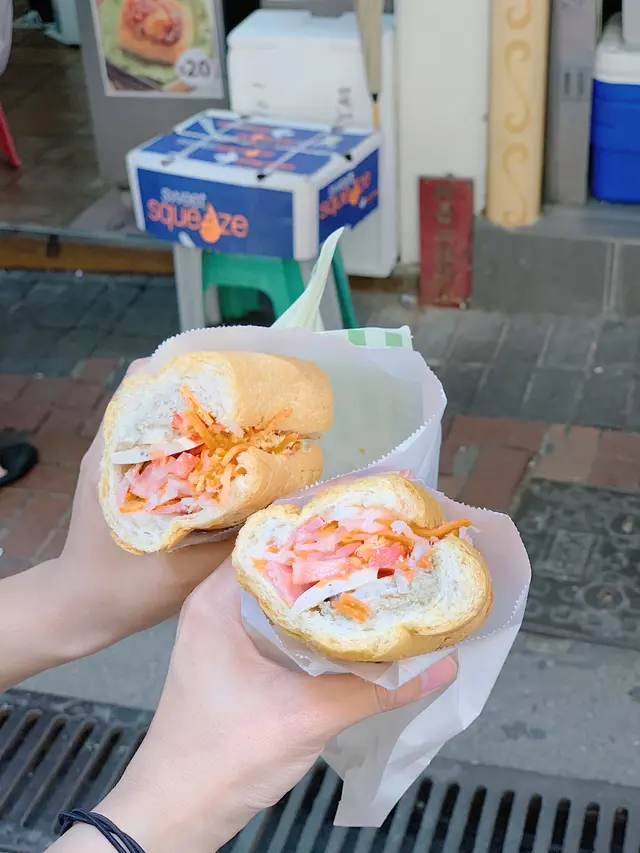 小編最近好想找回越南法包的美味😋另外兩間在香港 有名的我也吃過了今次就試一試這間吧🤩馬丁王正宗越南法包(半條)HKD$50第一啖吃下去已經覺得上顎快會受傷了🤨脆得有點過硬 不過會吃到有點狼狽 麵包碎會掉下來😎口感非常豐富🌝內有肝醬、腩肉、扎肉、蕃茄、醃酸蘿蔔絲、青瓜🥕🥒正常會有芫荽的 但小編和友人都不太喜歡所以要求不加🙅🏻‍♀️🙅🏻店員詢問要不要辣 最後叫了小辣🌶哇!很辣哦!辣得很過癮!辣味都蓋過了所有食材了!🌶🌶🌶肝醬看到但吃不出味道來!價錢偏貴 整體來說其他店吃到的更划算🥳Follow Me : eatwegohk…查看更多