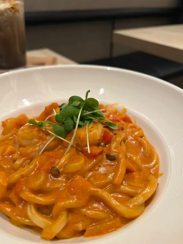 海老蕃茄豆乳烏冬