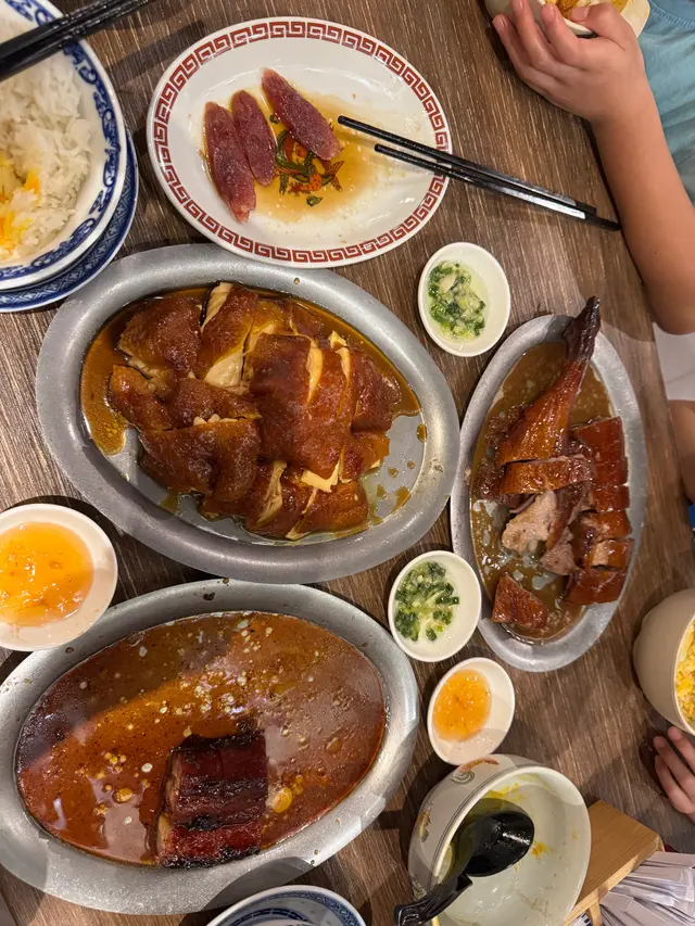 星期日七點仲要排隊😅 門口得幾個錶位,兜咗幾個圈,終於有位泊。兩大兩細,招牌發達叉燒、燶邊蛋、茅台醬油雞、燒鵝下莊、一條臘腸、一碟西蘭花苗+兩碗飯,我比較大食😝叉燒好有質感半肥瘦,四隻煎蛋條邊脆卜卜,茅台醬油雞啲細路食完係唔會飲醉既,起晒骨,燒鵝下莊非常得,有浸木香味道(非常鍾意食燒鵝,但非常唔鍾意排隊,同區嗰間出名嘅燒鵝,見到門口條人龍,都嚇親)。咁嘅質素咁嘅價錢。下次再黎人多我會選擇外賣。聽聞晏晝仲多人,有QR code可以嗌外賣。😄 #香港美食 #叉燒 #茅台醬油雞#燒鵝#兰杜街…查看更多