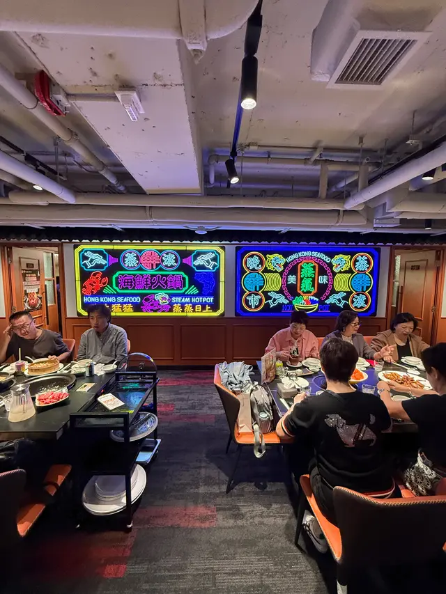 這間火鍋店之前在太子的時候看到很多廣告,但是未有機會試,今晚終於喺尖沙咀加拿分道這間分店試了星期一晚上七時,現場基本上坐滿八成我們比較幸運,七個人都可以比一個房間,可能是因為一早訂位的關係海鮮方面,每款海鮮逐一蒸,由於不像其他火鍋店限時享用食物,所以每一款慢慢蒸都是比較舒服,不用太急埋單人齊便開始上燉湯,燉湯味道不錯第一味菜就是大細蜆,蜆肉都算新鮮第二味,每人半隻龍蝦,龍蝦非常新鮮,簡單清蒸便很鮮甜之後的生蠔和鮑魚感覺一般大蝦非常新鮮,蝦肉比較彈牙肉蟹比較一般到火鍋,牛肉算可以原來還有蒸蝦丸,以及蒸豬肉丸,這兩個也可以陳村粉蒸雞,雪味比較重之後的火鍋配料比較普通,只有粟米冬菇,金菇,牛丸,魚蛋,南瓜等等,和其他火鍋店的選擇比下去飲品方面,選擇也不是太多甜品,桂花糕和椰汁糕不錯,還有一些本地的雪糕值得一讚是店員的服務非常好…查看更多