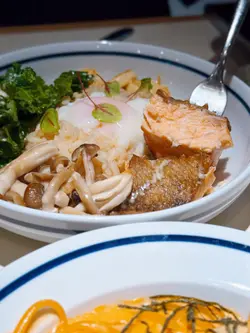 回春呢個名唔知點解令我好鐘意好想知點可以回春🧏🏻♀️食物走健康路線 味道都唔錯ꕥ 櫻花帶子奶油義大利麵櫻花蝦加帶子 本身就係鮮味組合吧🦐尤其是櫻花蝦份量不少 每一口都會沾上 好有口感 帶子熟度剛好 軟嫩~意粉醬汁夠creamy 入口滑溜🍝ꕥ 姬松茸味噌炊飯鮭魚定食主食加配菜 豐富得嚟 顏色配搭都好靚🥢先講主角鮭魚 煎到香香哋 油份充足但唔會膩🤤炊飯嘅味噌唔會過濃 感覺反而清新 配菜我較喜歡杏鮑菇同醬油豆腐 另外車厘茄都經過調味 甜中有微微的醎 都好好味呢Lunch set本身會包一杯茶 可以加錢升級咖啡或梳打等點咗焦糖鮮奶咖啡同Mocha都好啱口味☕️…查看更多
