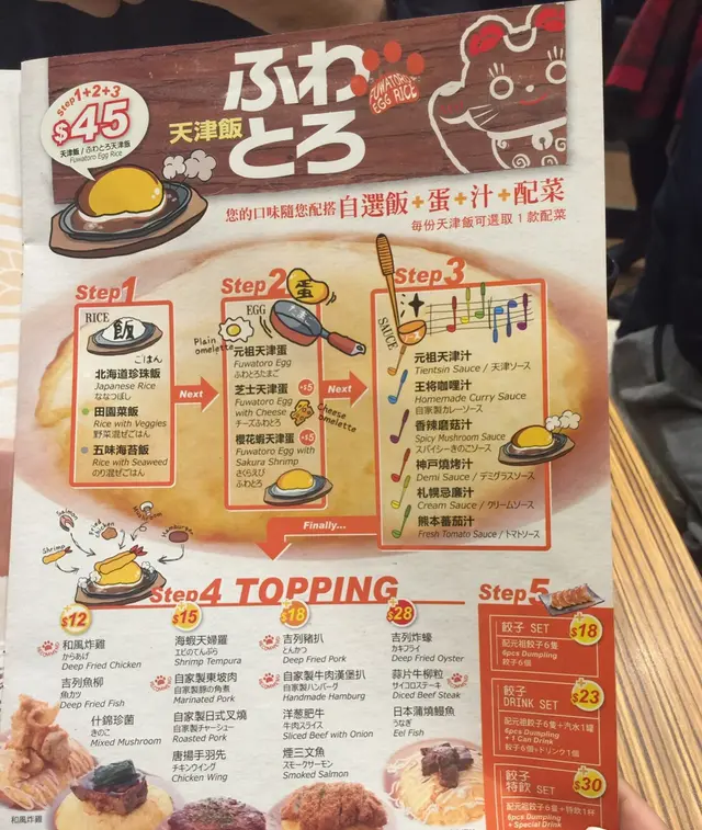 新嘗試天津飯 大阪王將咖哩屋 2016-04-25放假去左九龍灣行街,見到淘大呢間大阪王將咖哩屋都幾有趣,裝修企理而價錢合理,於是又試一試。見到餐牌有天津飯,唔好誤會呢個飯同天津有咩關係,但據我所知都幾多日本人鐘意食,反而無咩香港人識。呢度既天津飯可以自己揀飯,旦,汁同配料。我就揀左元祖旦同炸雞。元祖旦幾滑身而唔會太老,炸雞炸得金黃香口,食到停唔到口。 黎呢度一定要食招牌餃子。餃子一如既往地好,外層香脆內層肉多又多汁,粒粒漲卜卜,好抵食! …查看更多以上食評乃用戶個人意見 , 並不代表OpenRice之觀點。讚好分享新嘗試天津飯 大阪王將咖哩屋 https://s.openrice.com/QrbT044ed00檢舉 God Dawn Eat GDE 個汁點會係天津飯2017-04-01 回覆 張貼 評分4味道4環境4服務4衛生4抵食用餐途徑堂食