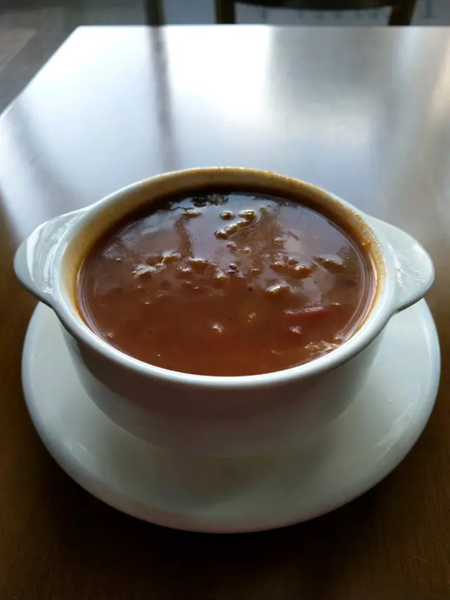 蟹腳浸太多鹽水,食一啖覺得再食落去可能會腎炎,唔知係咪貴野唔想客食太多。橙色類似蕃茄湯睇落好靚,放入口一陣焦味,同職員講,佢就扮聽唔到。